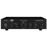 Monacor SA-100 Stereo-Verstärker, 100 W, HiFi-PA, 4 Eingänge, HintergrundmusiksystemKompakter 50-W-Universal-Stereoverstärker mit geräuschlosem Betrieb aufgrund seines lüfterlosen Kühldesigns. Zusätzlicher 3,5-mm-Anschluss mit umschaltbarer Empfindlichkeit an der Frontplatte. USB-Anschluss an der Frontplatte zur Stromversorgung und zum Laden externer Geräte Wahlschalter für die Audioquelle Regler für Lautstärke, Bässe und Höhen 6,3-mm-Kopfhörerausgang Robustes Metallgehäuse Spezifikationen Max. Leistung:...