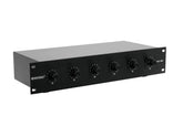 Omnitronic PA 6-Zonen Mono Vol Contr 30W BkBeschreibung 6-Wege-PA-Lautstärkeregler mit 24-V-Notfall-Prioritätsrelais 6 Audio-Übertrager für 100-V-Leitungstechnik Dämpfung in 10 Stufen 6 eingebaute 24-V-Notfallprioritätsrelais Frontplatte aus Aluminium Schraubsteckverbindung Rackeinbau mit 2 Einheiten (19") 48,3 cm Rackeinbau 2 HE Prioritätsrelais: 24 V Nennleistung: 6 x 30 W RMS Frequenzbereich: 50 - 18000 Hz Zonenausgang:...