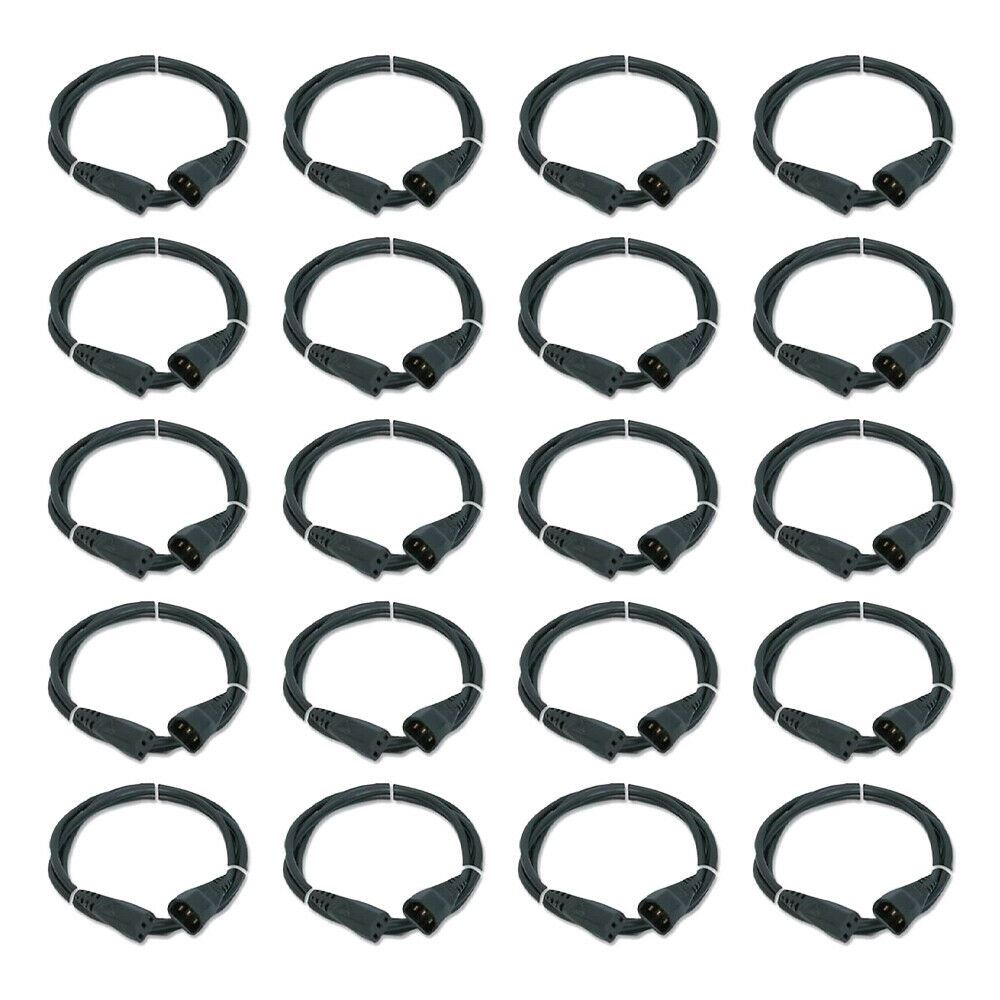 3-poliger CEE 22 10A-ummantelter Stecker und Buchse an beiden Enden eines 3-adrigen BASEC-zugelassenen Kabels. Schwarze PVC-Formteile und Kabelmantel.