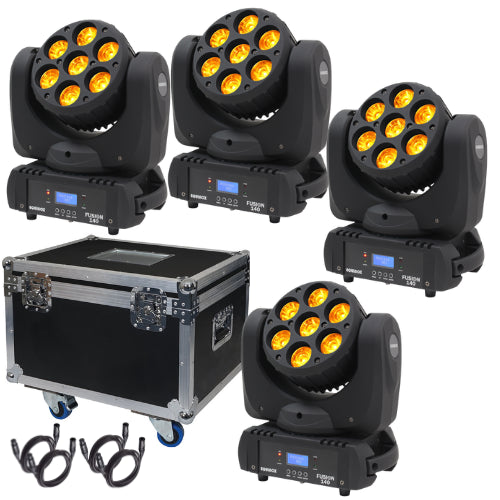 Dieses Paket enthält 4x Equinox Fusion 140 Moving Head Wash-Scheinwerfer und ein Quad-Flightcase