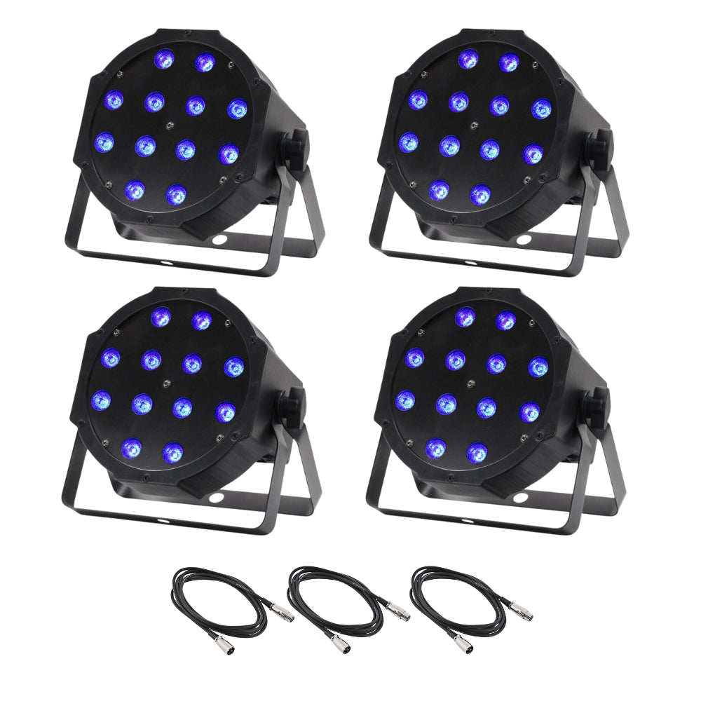 Dieses Paket enthält 4x Equinox MaxiPar Tri MKII und 3x DMX-Kabel