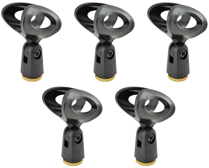 Ein bruchsicherer Mikrofonclip, der die gängigsten Mikrofone, darunter SM58, SM57, JTS, Peavey, Samson, Audio Technica und alle anderen Mikrofone mit 3/4-Zoll- und größeren Griffen, sicher an einem Standard-Mikrofonständer befestigt.