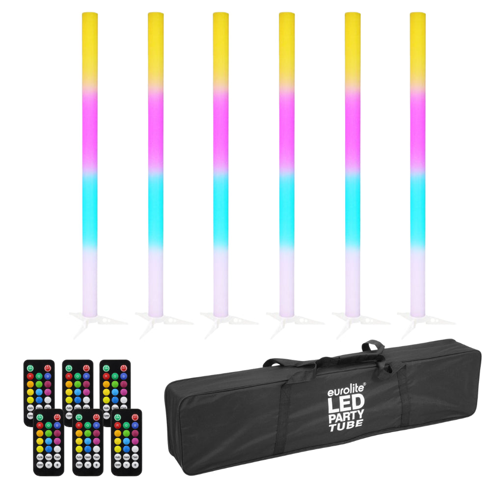 Dieses Paket enthält 6x Equinox LED Pulse Tube mit einer Tragetasche.