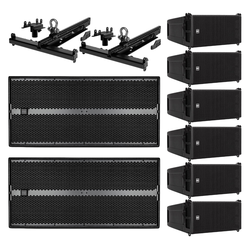 This bundle includes 6x RCF HDL-6A Line Array Speakers + 2x RCF SUB9006AS Subwoofers and 2x HDL6A Flybar for mounting line array speaker modules.