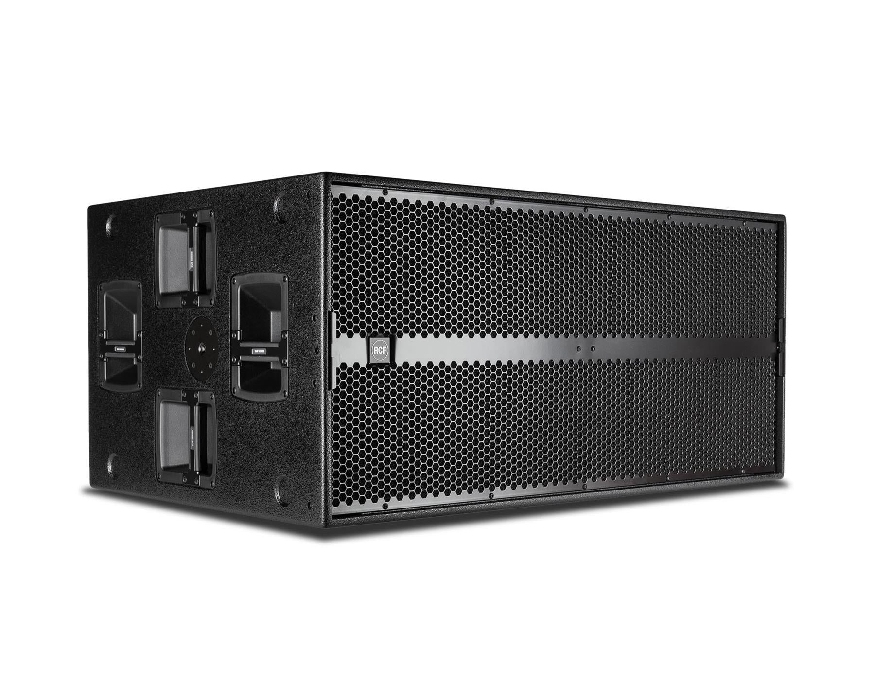 The SUB 9006-AS is one of the most powerful 2x18” subwoofers in the field of live sound. Featuring two high-power hyper-vented 18” neodymium woofers with 4.0” inside-outside voice coils, this cabinet delivers a serious amount of low frequencies. Powered by a 7200 W digital amplifier, the SUB-9006-AS can perform in the most demanding situations. The housing of the SUB-9006-AS matches the RCF D-Line HDL50-A and HDL10-A array systems, enabling to build stacked systems in a perfect combination.