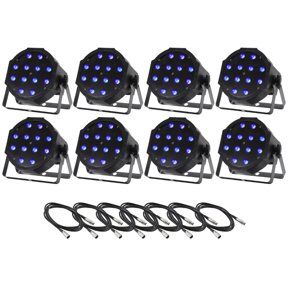 Dieses Paket enthält 8x Equinox MaxiPar Tri MKII und 7x DMX-Kabel