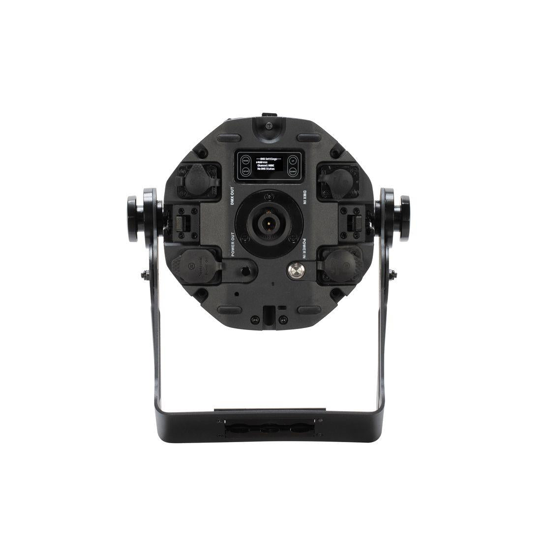 Connectivity 5-pin XLR DMX In/Out (IP-rated), outdoor locking power sockets, charging port