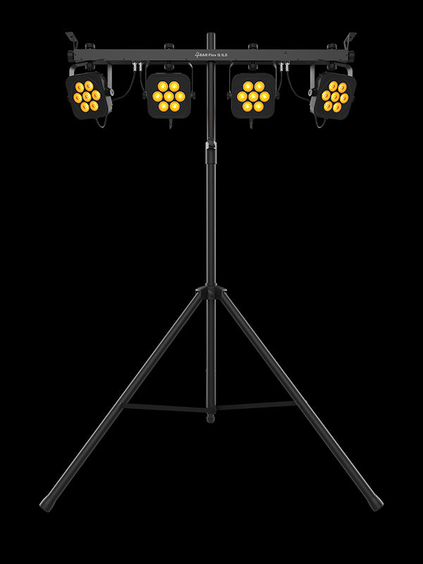 Mit dem 4BAR Flex Q ILS erreicht der Komfort der kompletten Waschbeleuchtung ein neues Niveau. Dieses All-in-One-System ist mit vier Par-Geräten an einer Stange ausgestattet. Da 4BAR Flex Q ILS mit Instant Light Show (ILS) kompatibel ist, was die Erstellung koordinierter Lichtshows für eine unbegrenzte Anzahl verschiedener Gerätetypen einfach und schnell macht, ist die Erstellung synchronisierter Lichtshows ohne DMX noch einfacher. Hochintensive Quad-Color-LEDs (RGBA) erzeugen ein breites Farbspektrum und erzielen mit ihren kräftigen bernsteinfarbenen LEDs natürlich wirkende Farbtemperaturen. 4BAR Flex Q ILS lässt sich in wenigen Minuten auf- und abbauen und wird mit einer praktischen Tragetasche geliefert. Die Vielseitigkeit des Geräts wird durch zwei L-Halterungen erhöht, mit denen Sie die Einrichtungsmöglichkeiten und Konfigurationen maximieren können. Montieren Sie problemlos bis zu 4 zusätzliche Leuchten an der Oberseite des 4BAR Flex Q ILS und versorgen Sie zusätzliche Leuchten mit Strom über die integrierten Edison-Stecker. 4BAR Flex Q ILS lässt sich über das Durchgangsloch an den meisten Stativen oder Lautsprecherständern befestigen, ohne dass zusätzliche Klemmen erforderlich sind. D-Fi™ USB-Kompatibilität für drahtlose Master/Slave- oder DMX-Steuerung ist integriert und mehrere Steuerungsoptionen umfassen Standalone, DMX-Modus, drahtloser Fußschalter oder IRC-6.