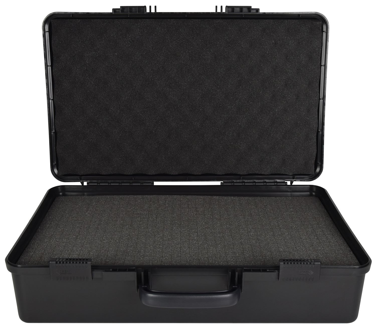 Geformte ABS-Tragetaschen zum Schutz von Geräten wie Mischpulten, drahtlosen Mikrofonen und Audioprozessoren. Im Inneren können segmentierte Schaumstoffquadrate herausgenommen werden, um sie an die Form des Geräts anzupassen und ein eng anliegendes Schutzpolster zu bieten. Der integrierte Tragegriff und die Schiebeverriegelungen halten den Koffer während des Transports sicher verschlossen.