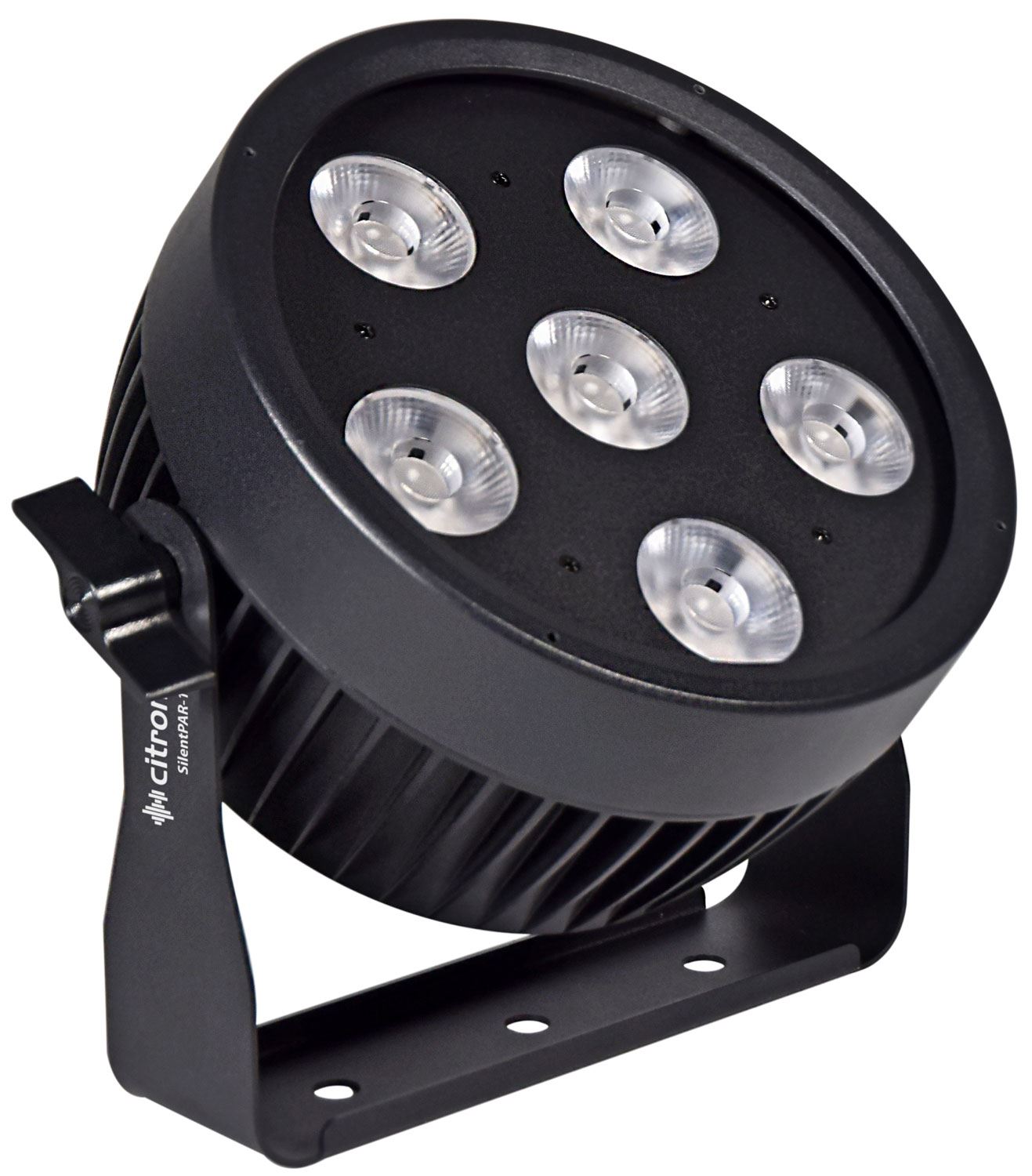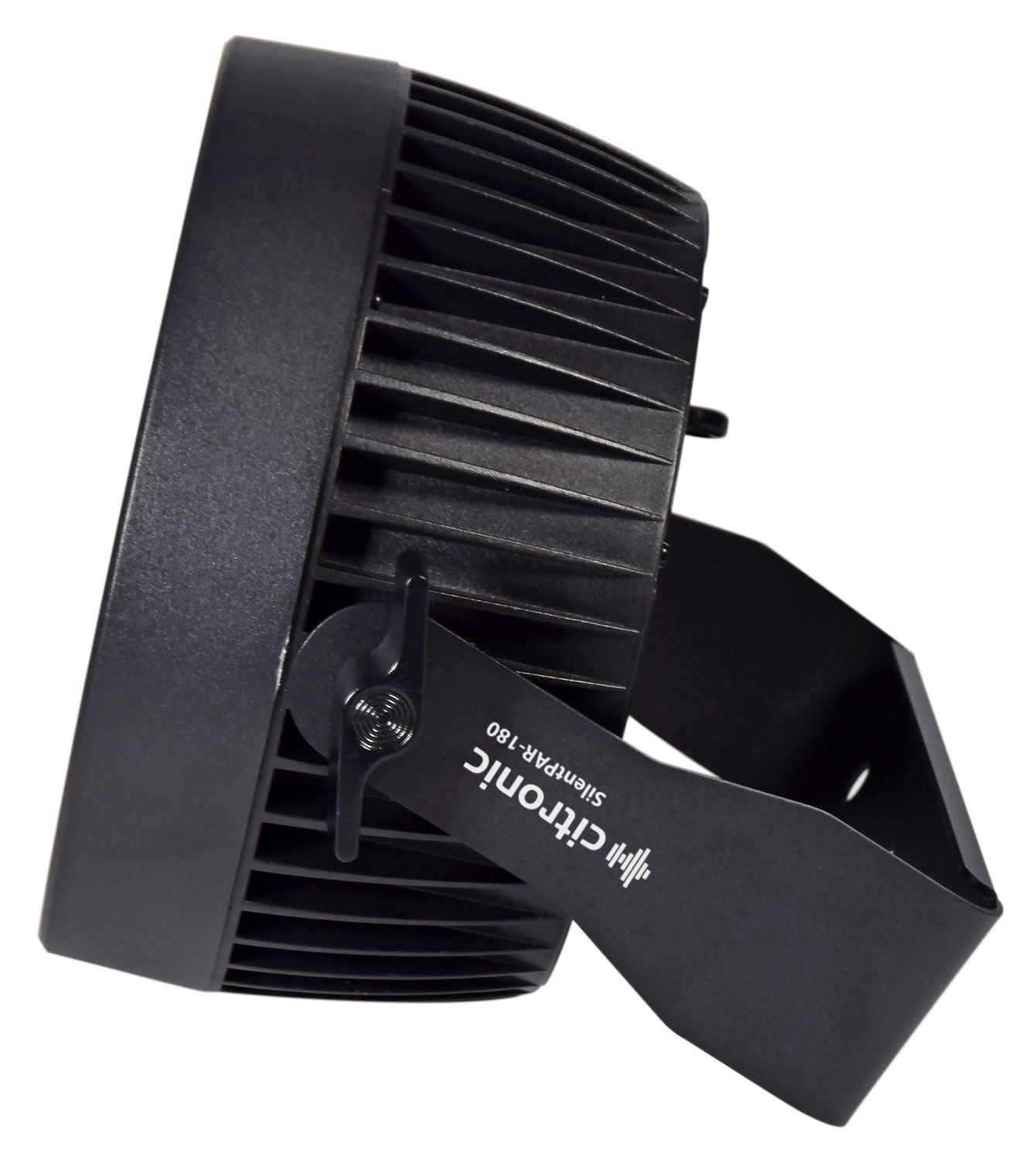 Premium build quality and cutting-edge design combine to provide a wide range of brilliant colours from this Citronic SilentPAR light effect. The whisper quiet fan ensures the near to silent operation of 6 x 30W RGBWA+UV COB LEDs with minimal heat emission. Easily control the unit's internal auto, sound activated and static programs via the control panel on the back or by using 6, 8 or 11 channel DMX connection if preferred. The heavy duty metal chassis and stand/bracket offer strength and solidity and the twist and lock power connections on the back, finish off the SilentPARs professional appearance and performance.