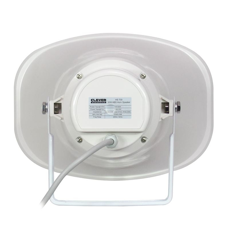 Ein wetterbeständiger Hornlautsprecher, der für Durchsagen und Sprachverstärkung geeignet ist. Das hocheffiziente Design projiziert gesprochene Worte oder Warntöne und sorgt über den gesamten Frequenzgang für eine hohe Verständlichkeit. Dank der ABS-Konstruktion mit Metallhalterungen ist die robuste Bauweise des Soundprojektors ideal für die Installation in großen Freiflächen wie Sportstätten, Parkplätzen und Lagerhallen.