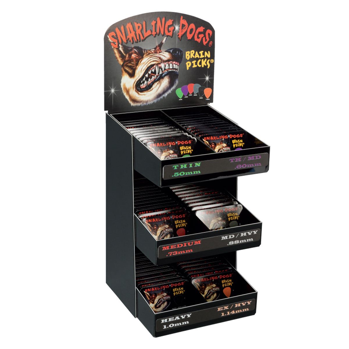 D'Andrea 351 Snarling Dogs Brain Pick Tin Box Display ~ 60 Tins ~ 12 Picks/Tin.