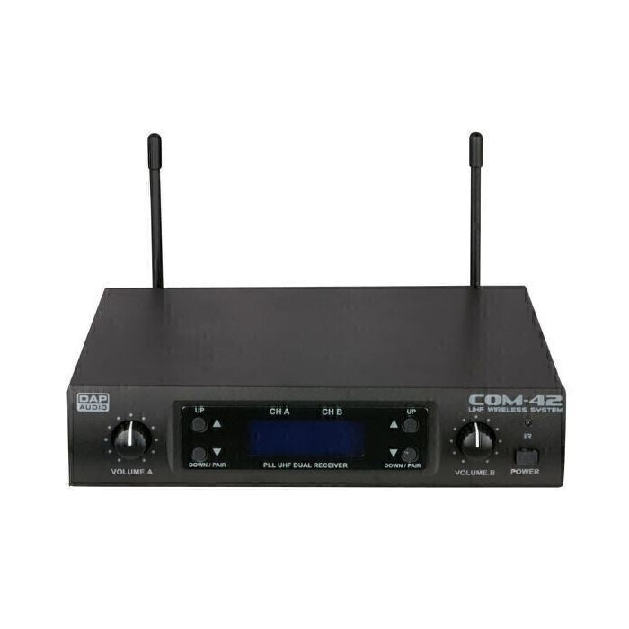 Wenn Sie zwei drahtlose Mikrofone benötigen und nur einen Kanal an Ihren Eingängen zur Verfügung haben, ist das DAP COM-42 das ideale drahtlose Mikrofonset für Sie. Der Funkempfänger verfügt über einen symmetrischen XLR-Ausgang für jeden Funksender sowie einen unsymmetrischen MIX-Ausgang auf einem 6,3-mm-Klinkenstecker. Mithilfe der Lautstärketasten an der Vorderseite des Empfängers lässt sich ganz einfach die gewünschte Balance zwischen zwei Sendern einstellen. Der COM-42 verfügt über 99 Frequenzen, die einfach über die Infrarot-Synchronisationstechnik eingestellt werden können. Ein übersichtliches LCD-Display zeigt die Signalstärke, den Audiopegel und die Trägerfrequenz jedes Kanals an. Ein COM-42-Funkmikrofonset enthält einen Empfänger und 2 Handsender aus Metall. Es ist auch möglich, einen optionalen Taschensender zu verwenden.