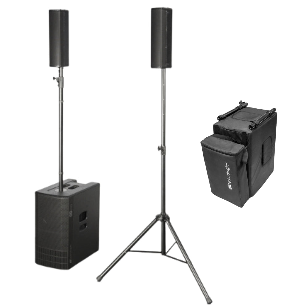 The ES1203 bundle comes with sub cover, a bag for tops, a telescopic 35mm pole, 2 7m speakon cables and power cable.