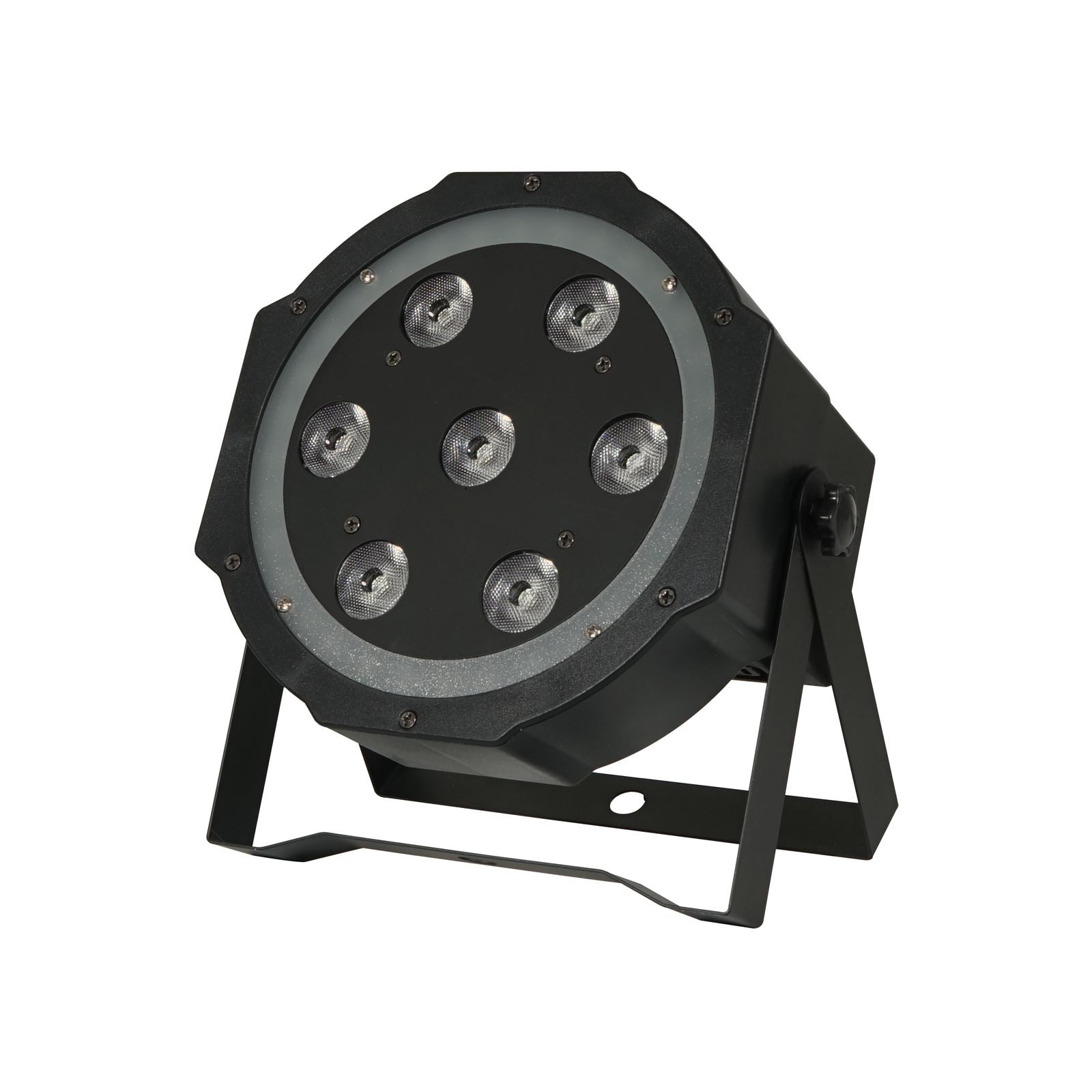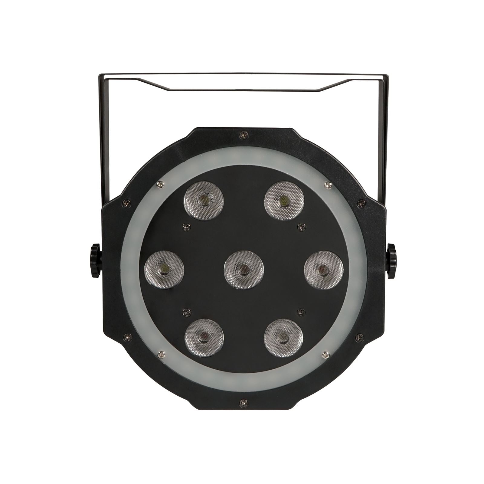 Dieser kompakte PAR mit schlankem Profil ist sowohl für die Beleuchtung nach oben als auch für Bühneneffekte zum Augenschmaus konzipiert. Es verfügt über 7 x 8 W vierfarbige RGBW-LEDs, die eine sanfte Farbmischung ermöglichen, während der umgebende RGB-LED-Ring die Farbe jagt und ändert und so faszinierende Effekte erzeugt. Mit mehreren integrierten Funktionen kann dieses Gerät entweder im automatischen, musikaktiven oder DMX-Modus arbeiten.