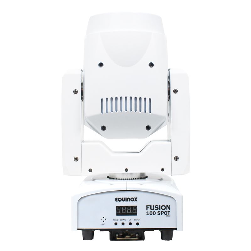 Eine kompakte, funktionsreiche Leuchte, ideal für mobile Anwendungen und Installationen. Eine leistungsstarke weiße 80-W-LED erzeugt scharfe Strahlen und Muster. Ein Rad mit 7 Farben plus Offenheit ermöglicht satte Farbtöne zur Sättigung des Fusion 100 Spots-Strahls, während ein rotierendes Goborad mit 5 rotierenden Gobos, darunter Herzen und Sterne plus Offenheit, das Arsenal an integrierten Effekten erweitert. In diesem kompakten Gehäuse sind außerdem ein 3-Facetten-Rundprisma und ein motorisierter Fokus untergebracht, um das projizierte Bild aus jeder Entfernung scharf zu halten.