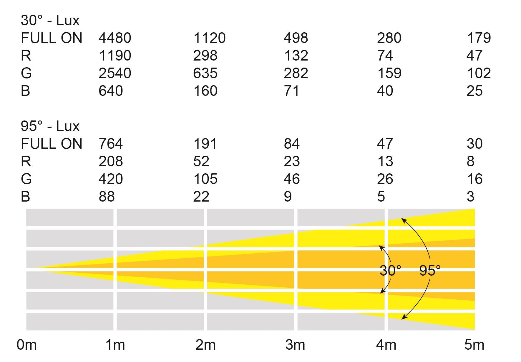 1.120 Lux bei 2 m (pro Par, voll eingeschaltet)