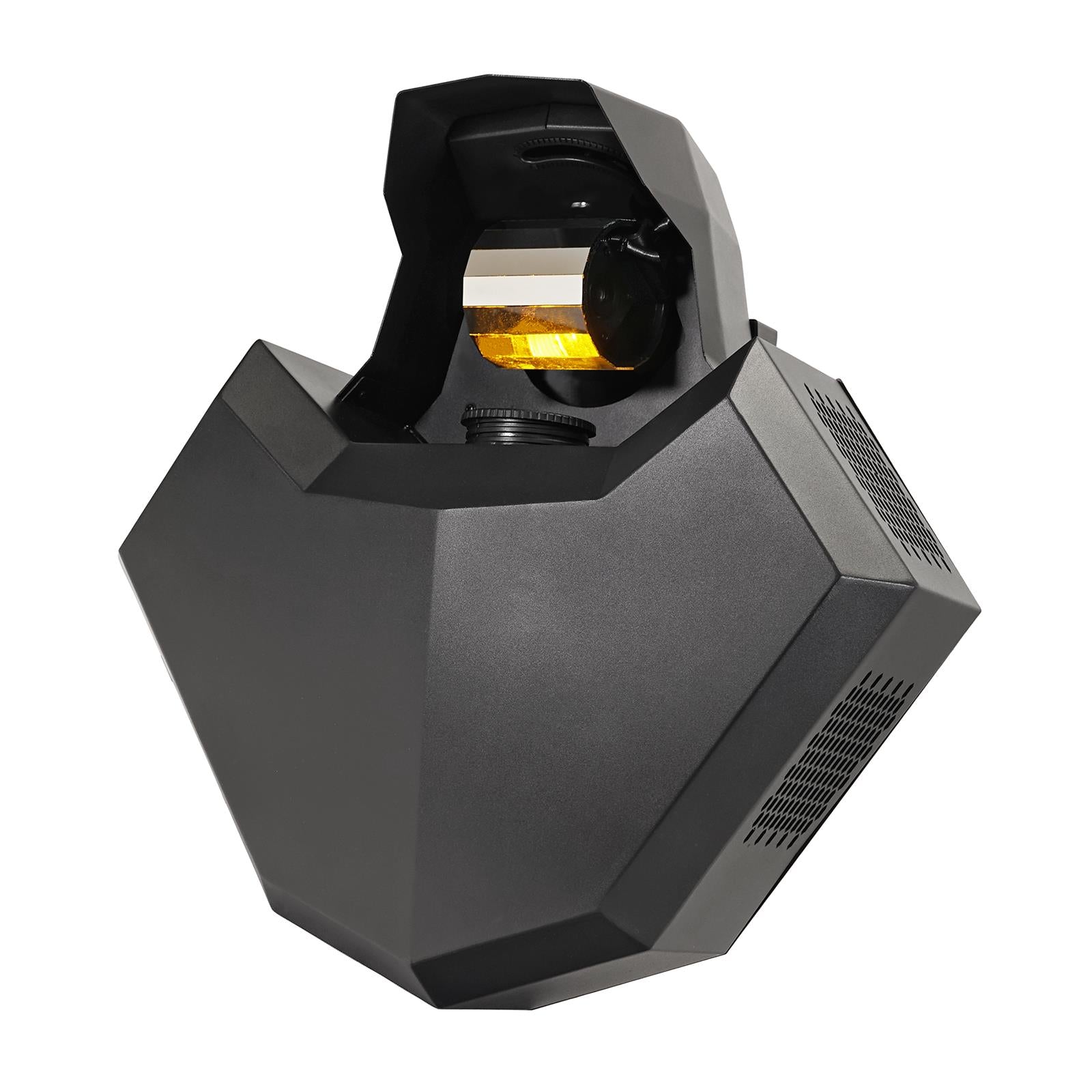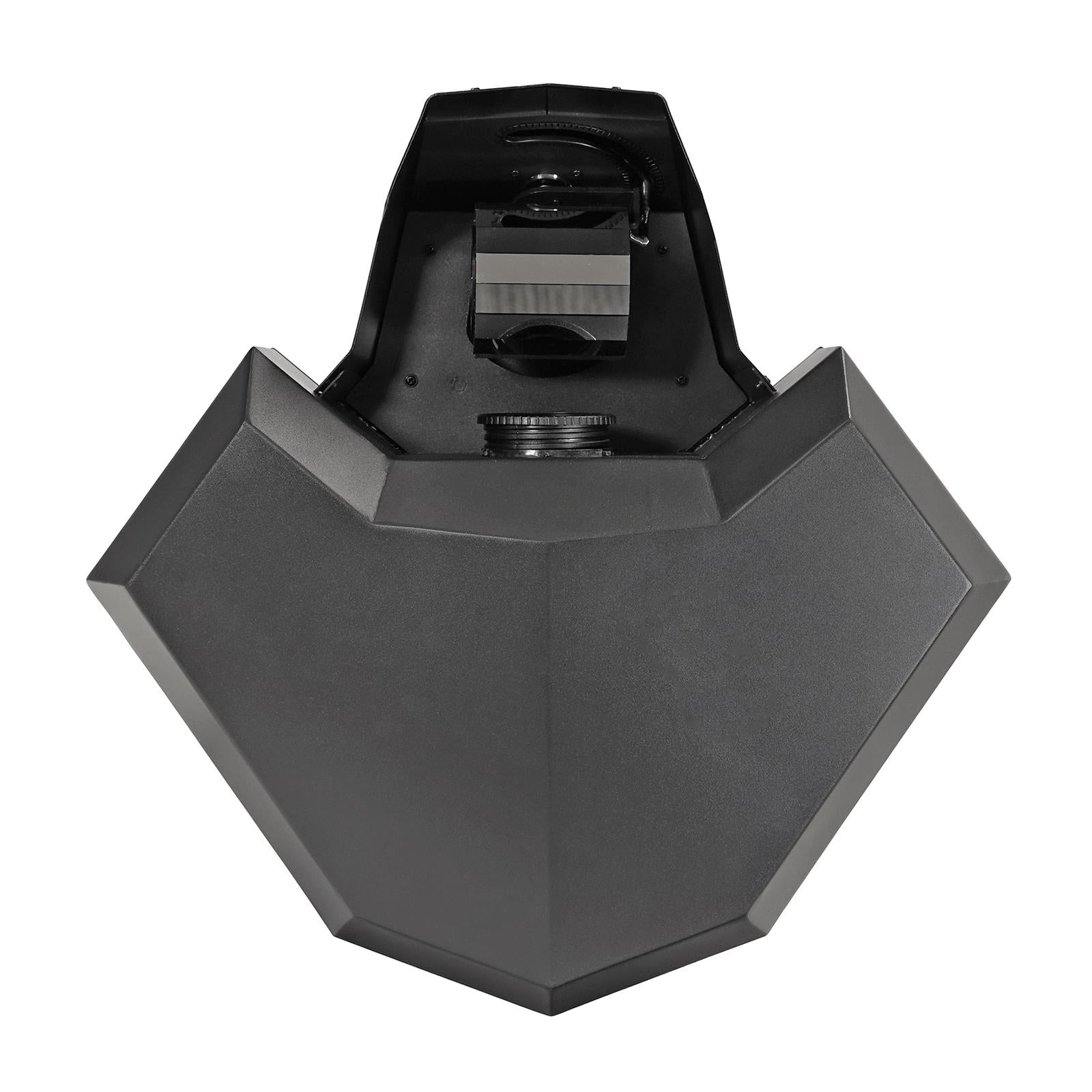 The Helix Evo XP is a powerful 150W barrel effect lighting unit combined with a mirror dish to project an array of multi-colored rotating gobos that sweep across the room