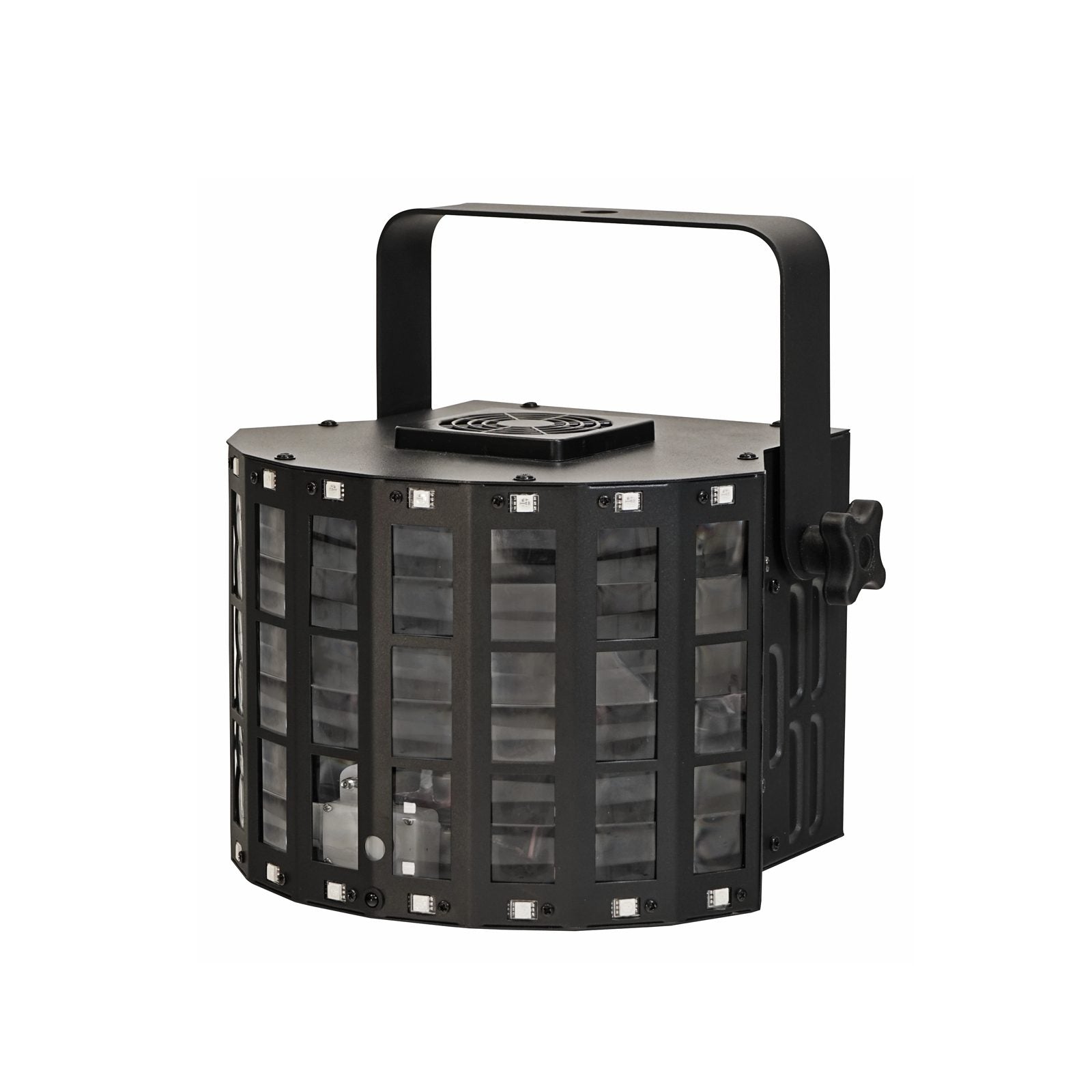 The Interceptor XP is a 3-in-1 effect covering areas in multicoloured, widely dispersed beams of light that rotate and twist at varying speeds via its 48 lenses. Further bolstering this fixtures offering is a red/green laser source and 16 x 0.5W RGB LEDs to provide strobe effects.