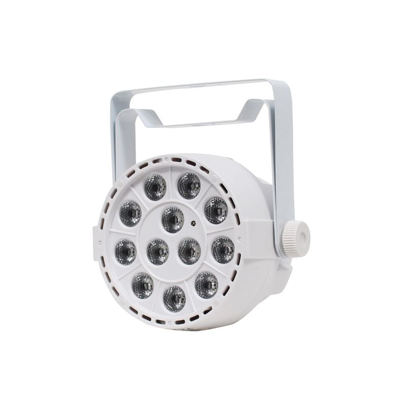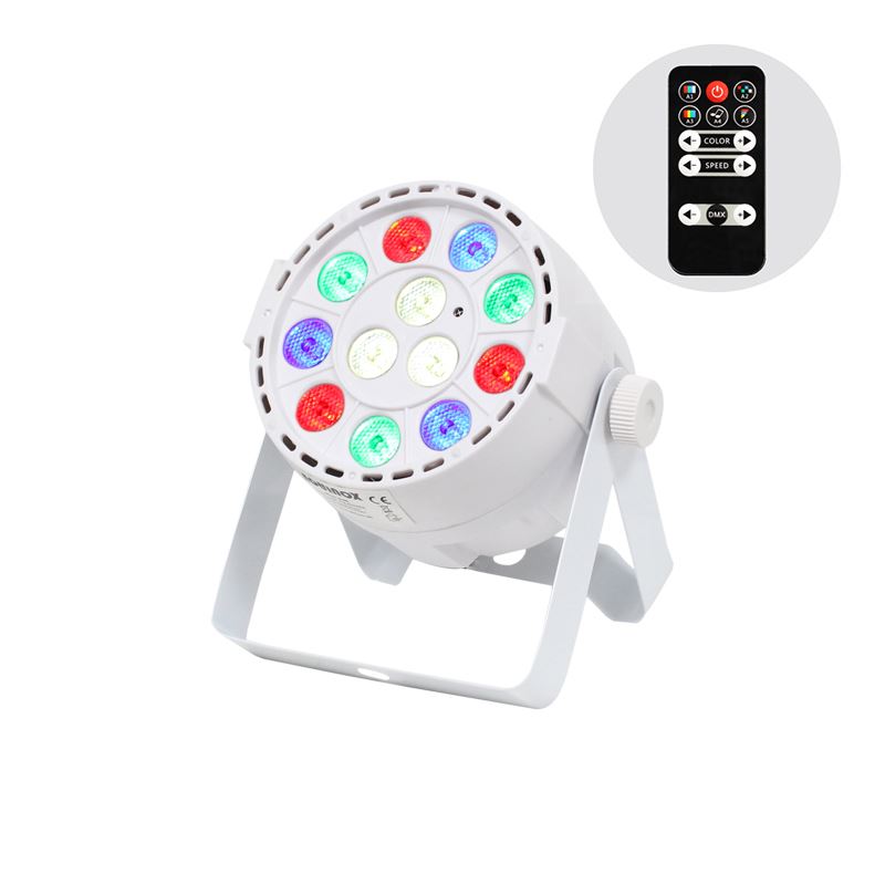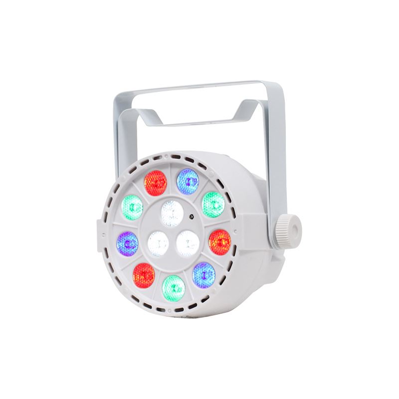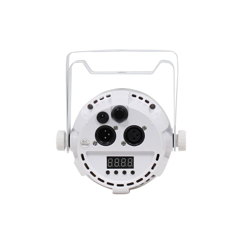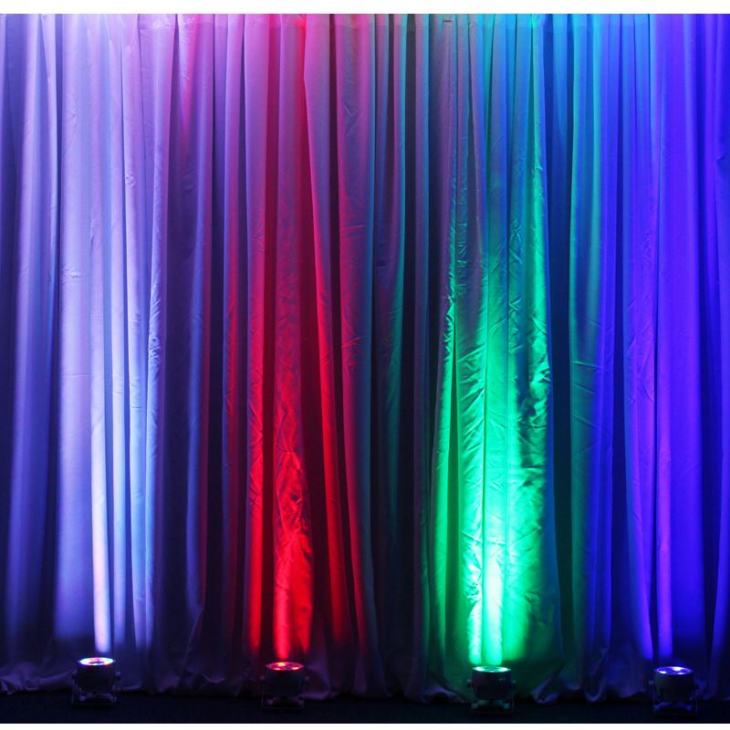 Wiederaufladbarer, mit Lithiumbatterien betriebener schlanker LED-Par-Dose mit 1-W-RGBW-LEDs für die Bühnen- oder Wandreinigung. Der interne Akku hält die Ladung mit einer einzigen Ladung bis zu 6 Stunden lang, und da keine Stromkabel angeschlossen werden müssen, können Sie das Gerät überall aufstellen, wo Sie möchten. Funktionsoptionen und DMX-Adressierung können über das 4-Tasten-LED-Display geändert oder über die mitgelieferte IR-Fernbedienung gesteuert werden. Die Geräte können auch als Master/Slave betrieben werden. Mithilfe des integrierten Menüsystems können Sie Farben manuell auswählen oder mischen und so ein breites Farbspektrum erhalten.