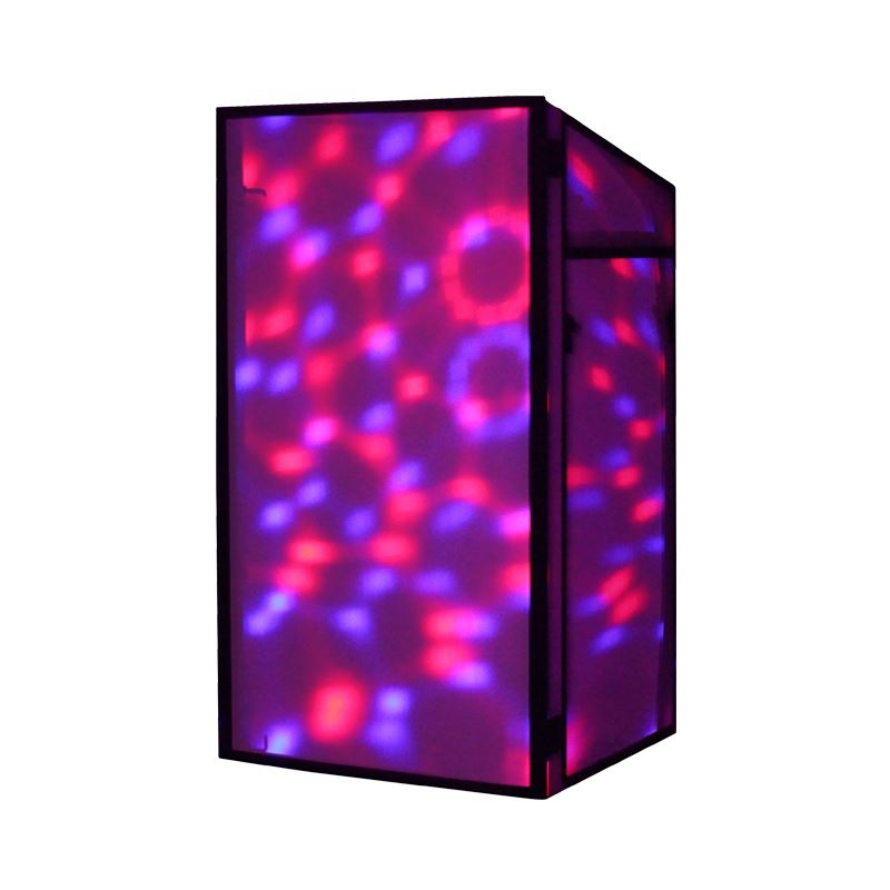 Dieses ultraleichte Equinox MICRON DJ-Booth-System aus Aluminium wird mit einem stabilen Regal, Querstangen, einem Overhead-Kit, einer Tragetasche und einer weißen Lycra-Abdeckung geliefert, sodass die Booth von hinten mit einer Vielzahl von Lichteffekten beleuchtet werden kann (nicht im Lieferumfang enthalten). Ein weißer Sternenstoff-Effekt kann durch die Verwendung der optionalen schwarzen Sternenstoffe mit dem mitgelieferten weißen Lycra erzeugt werden. Das in diesem System enthaltene Overhead-Kit ermöglicht es dem Benutzer, eine vollständige Lichtshow zu erstellen, ohne dass separate Beleuchtungsstative erforderlich sind.