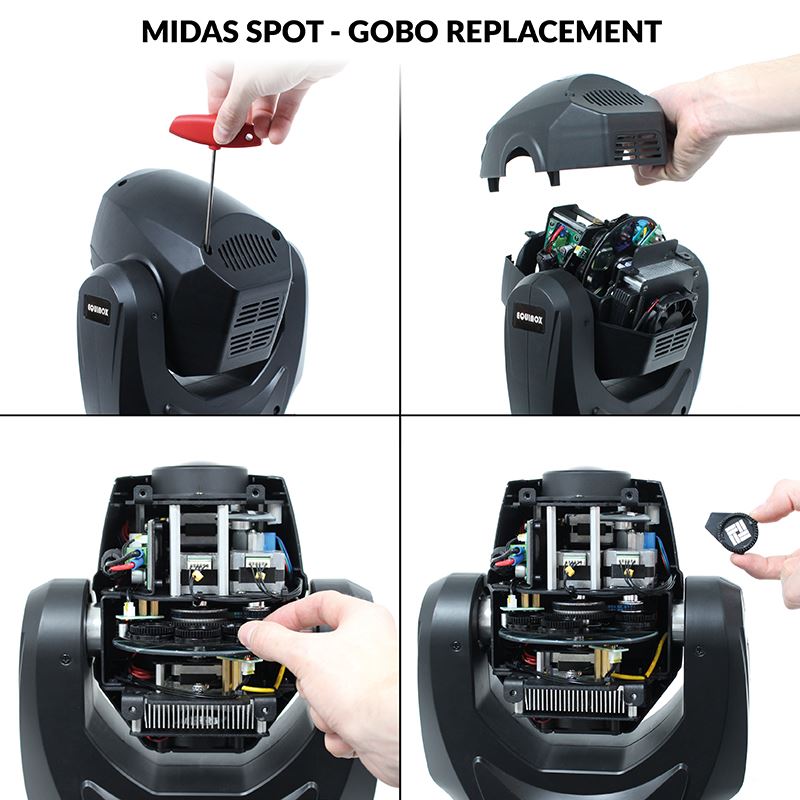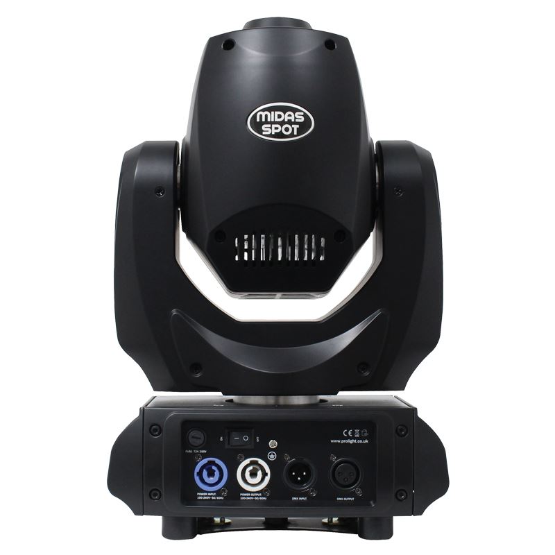 Der Midas Spot ist ein revolutionärer LED-betriebener Moving Head. Es bringt die LED-Leistung einer 60-W-Quelle auf die nächste Stufe und das alles in einer erstaunlich kompakten Leuchte. Der Midas Spot hat eine Leistung, die mit einer 250-W-Entladungsleuchte vergleichbar ist. Der Midas Spot ist viel schneller als viele andere Moving Heads und bewegt sich nicht nur agiler, sondern sorgt dank seiner automatischen Schwenk-/Neigekorrektur auch für eine perfekte Synchronisierung. Die gewaltige Leistung seiner LED-Quelle, kombiniert mit 7 dichroitischen Farben, einem dreifarbigen Filter sowie offenen und 7 rotierenden, austauschbaren Gobos und der Hinzufügung eines 3-Facetten-Prismas zusammen mit einem motorisierten Fokus machen den Midas Spot zu einem spektakulären Effekt in jeder Anwendung.