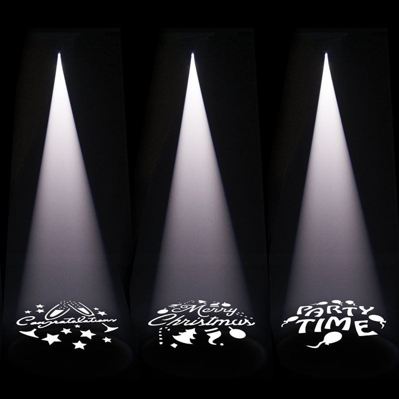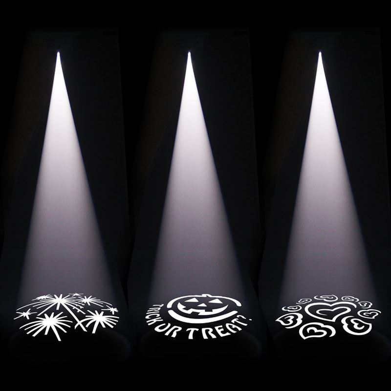 Drucken Sie Ihre eigenen Gobos für den vorübergehenden Gebrauch mit Standard-Transparentfolie bis zu 1 mm