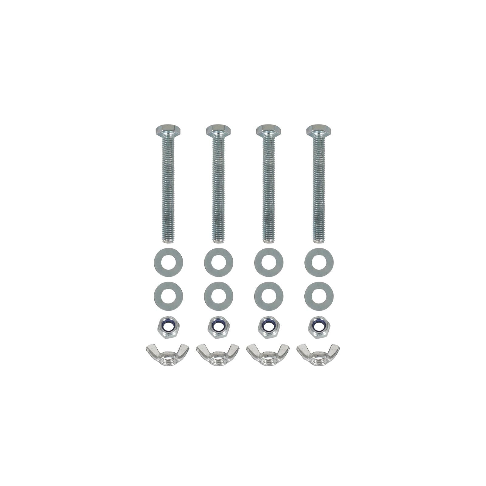 Im Lieferumfang sind sowohl M8-Nyloc-Muttern für langfristige Befestigungen als auch M8-Flügelmuttern für kurzfristige und vorübergehende Verwendung enthalten