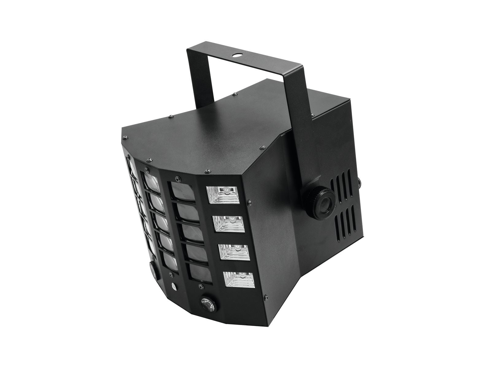 Lichteffekt mit rotierenden Gobos, UV-LEDs, weißen Strobe-LEDs und DMX