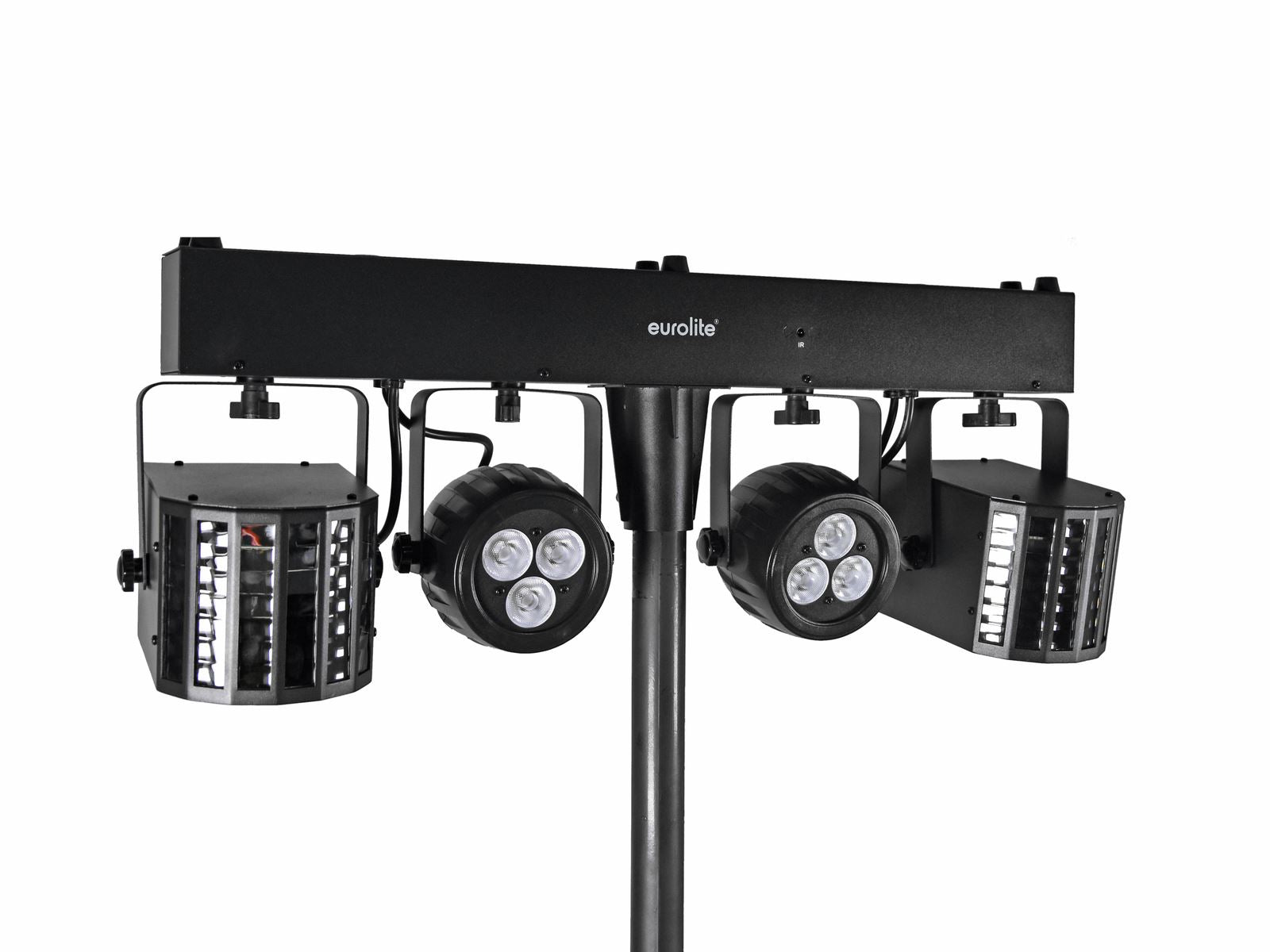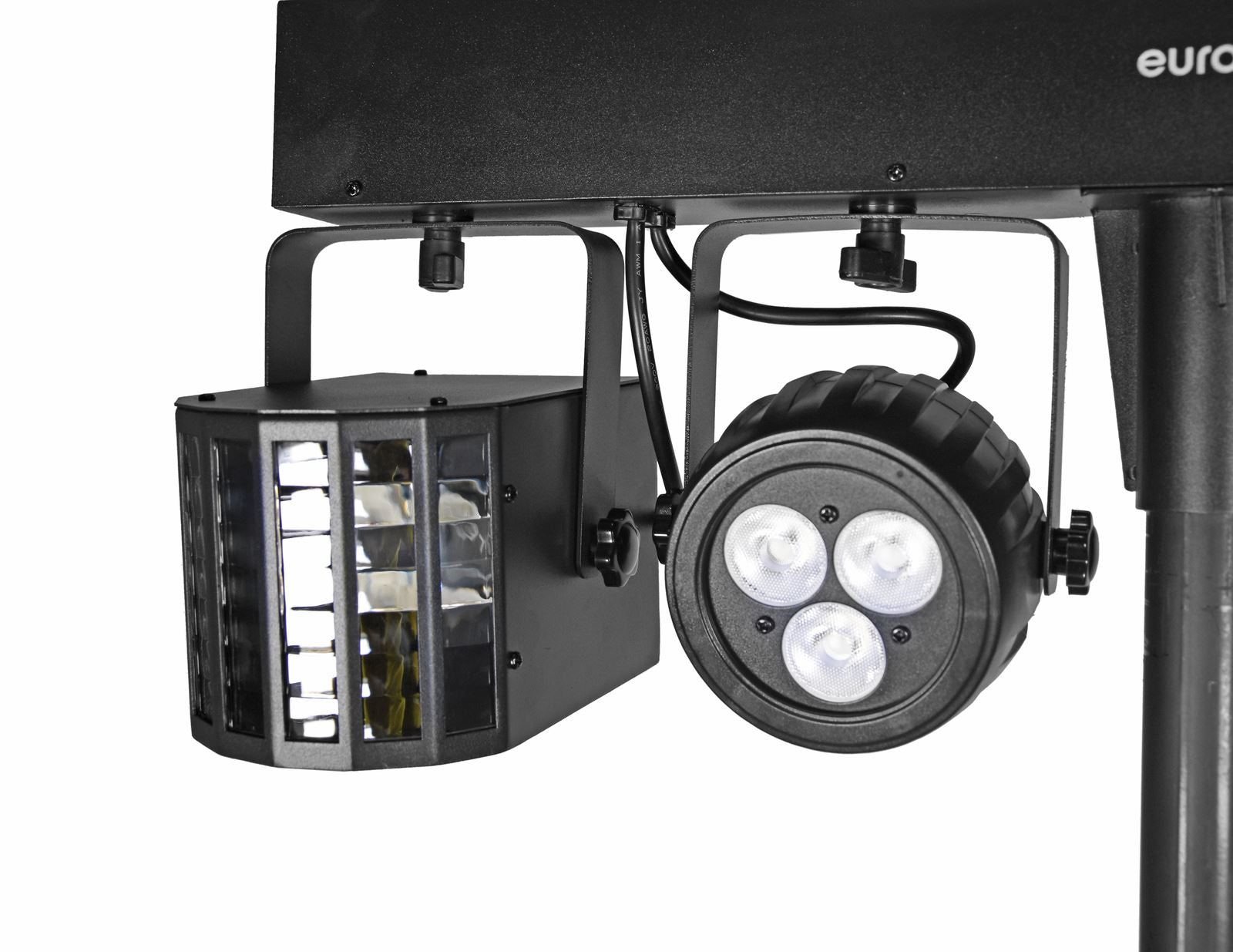 DMX-Lichteffektleiste mit 2 rotierenden LED-Derbys und 2 LED-Spots