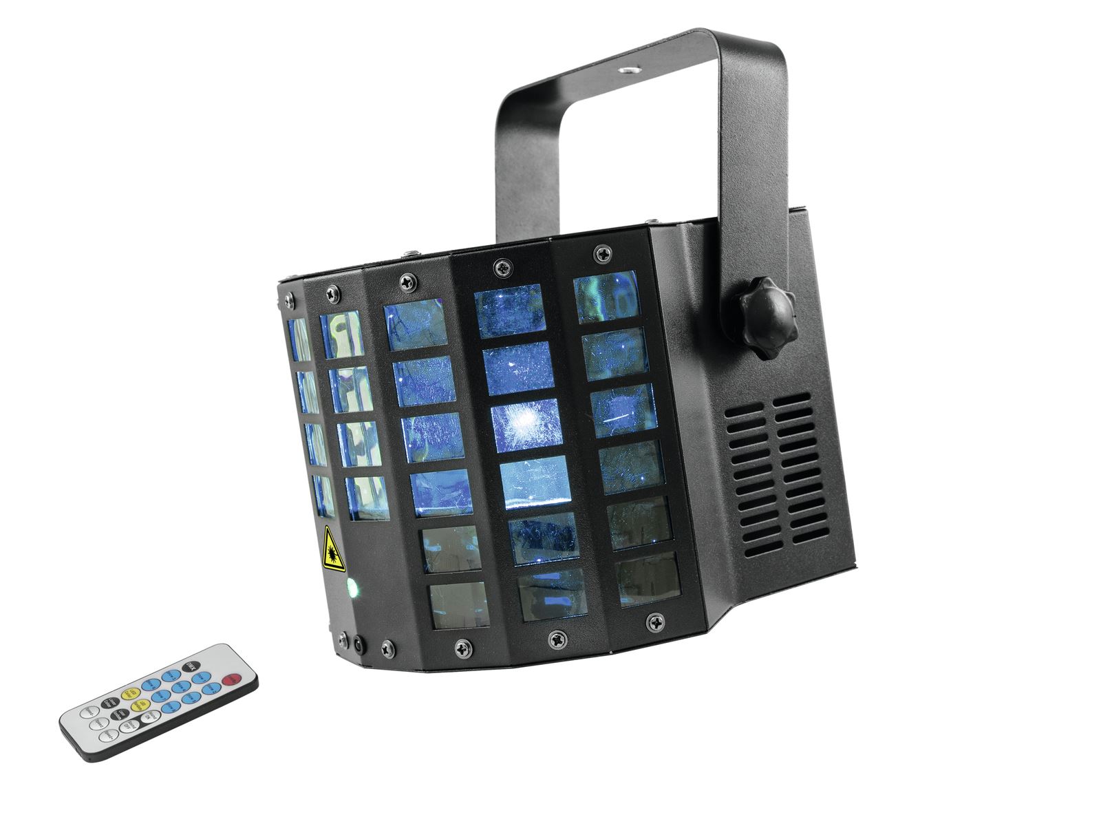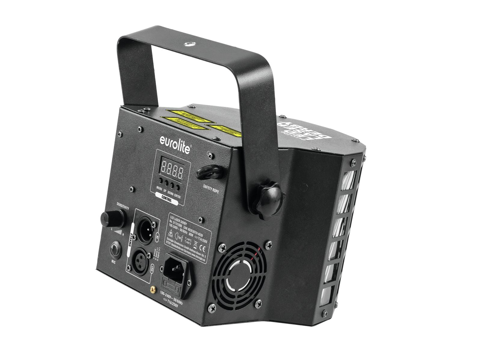 | Kontrolle: | Eigenständige; DMX; Ton zu Licht über Mikrofon; Master/Slave-Funktion; Light J-Software; EUROLITE LED PC-Control 512 Software; EINFACHE SHOW |