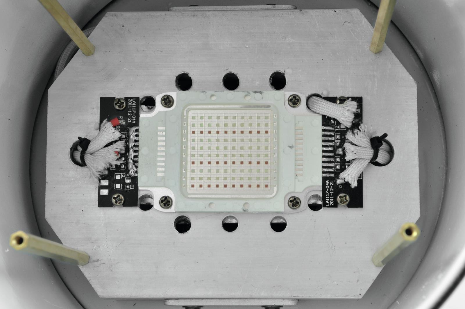| LED: | 1 x COB (Chip-on-Board) 60 W 3in1 TCL RGB (homogene Farbmischung) |