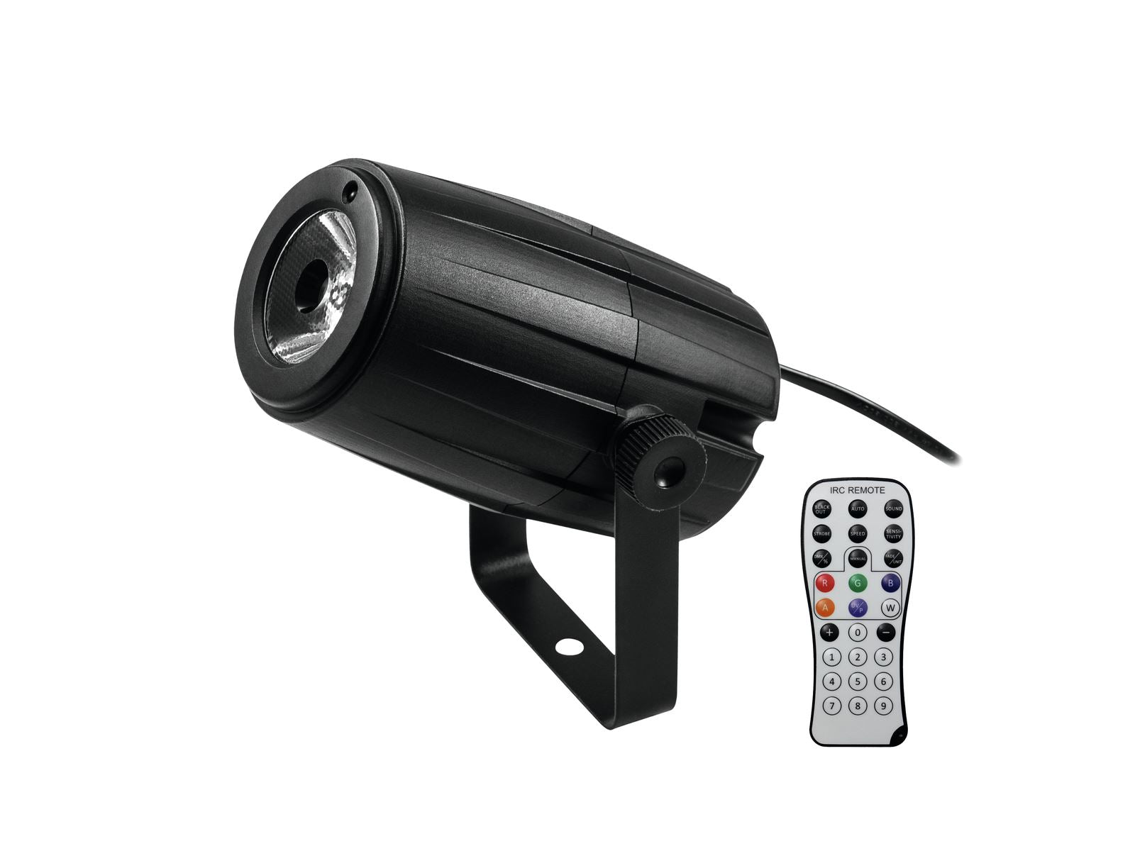 LED-Pinspot mit COB-LED- und DMX-Steuerung sowie IR-Fernbedienung