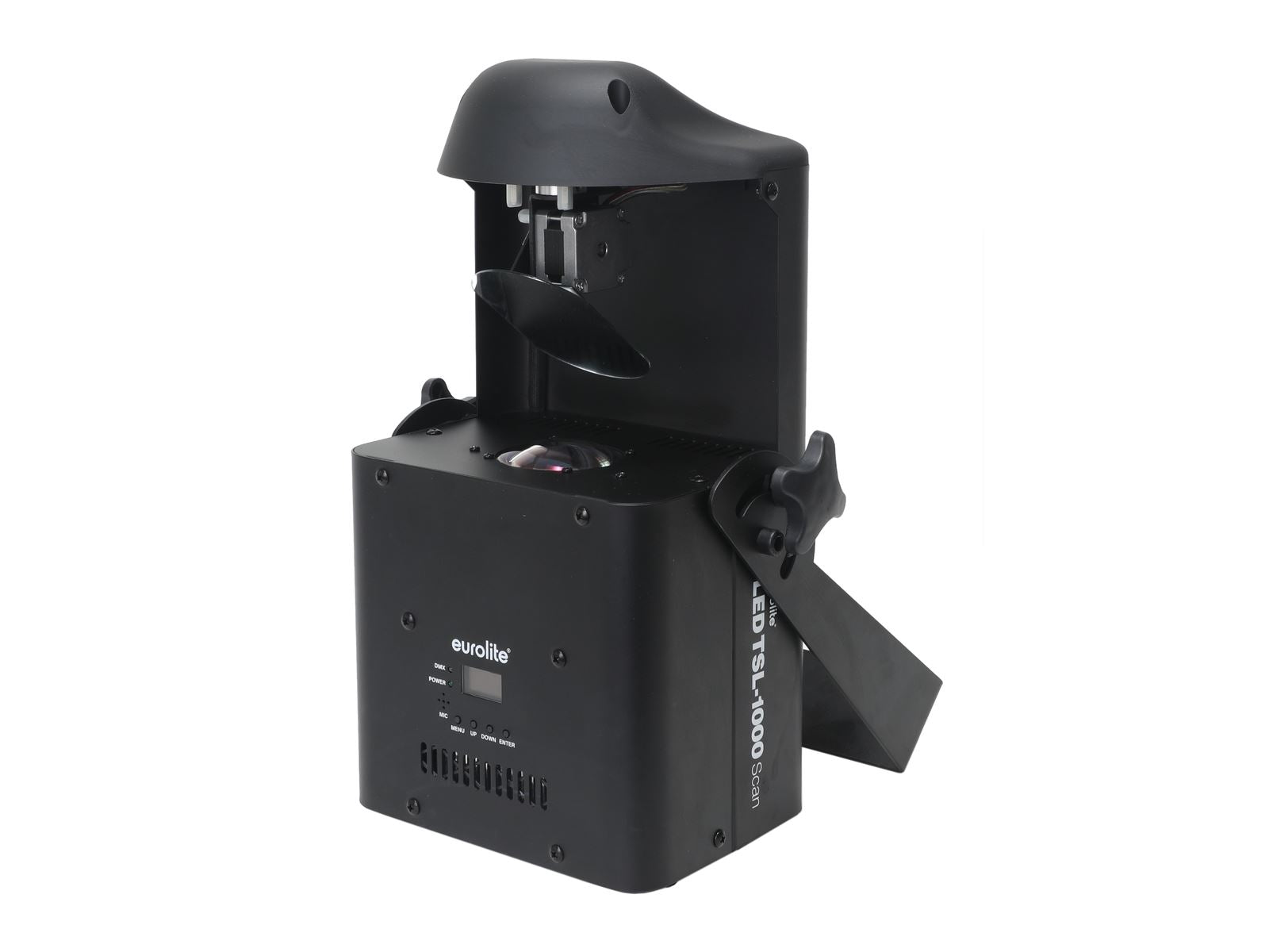 Scanner mit 100-W-LED, rotierenden Gobos, 3-Facetten-Prisma, Farbrad und motorisiertem Fokus