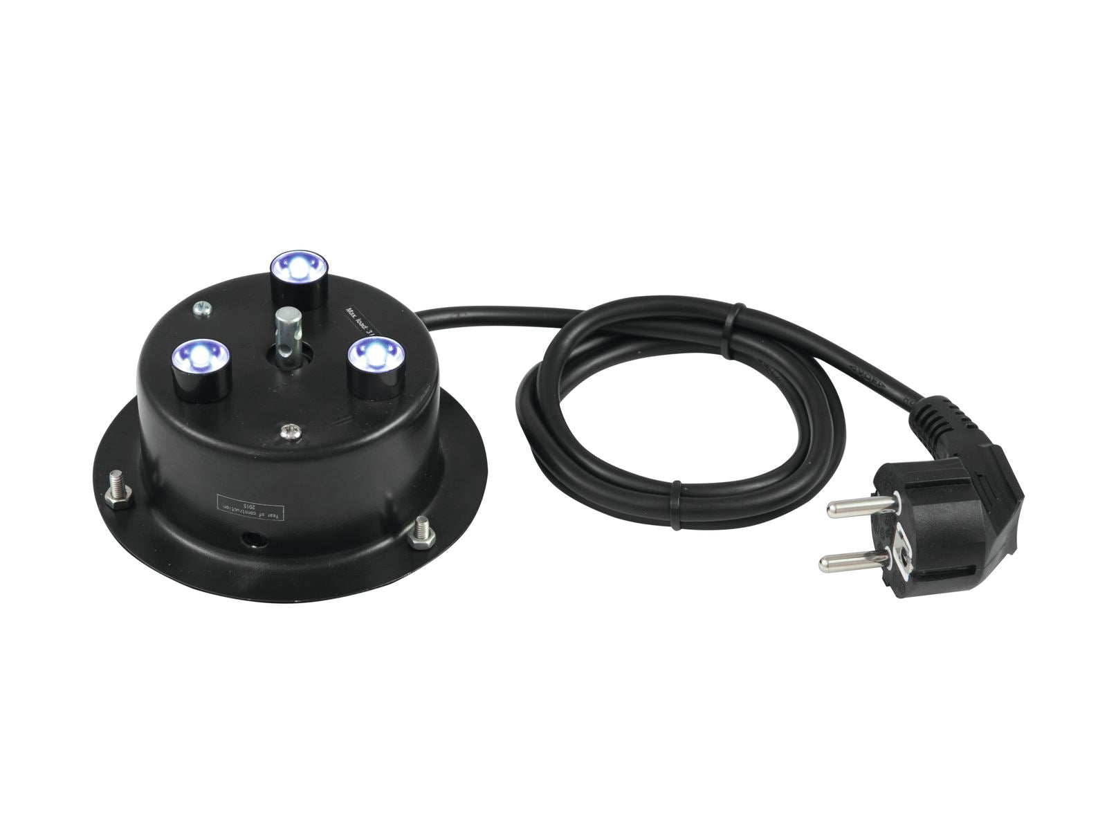 Dieser solide Spiegelkugelmotor von Eurolite reflektiert wunderschöne Lichteffekte an Decken und Wänden; ohne jegliche Außenbeleuchtung! Dieser Motor vom Typ MD-1015 ist für Spiegelkugeln bis 3 kg ausgelegt und wird einfach an die Decke geschraubt oder mit dem optionalen Montagezubehör an einer Traverse befestigt. Es dreht den Ball nicht nur gleichmäßig mit 1,5 Umdrehungen pro Minute, sondern beleuchtet ihn auch von oben mit 3 weißen LEDs. Das reflektierte Licht hüllt den Raum dann in ein unendliches Meer aus bewegten Lichtpunkten. Selbstverständlich wird der MD-1015 betriebsbereit mit Netzkabel geliefert und ist dank moderner LED-Technologie zudem besonders energieeffizient.