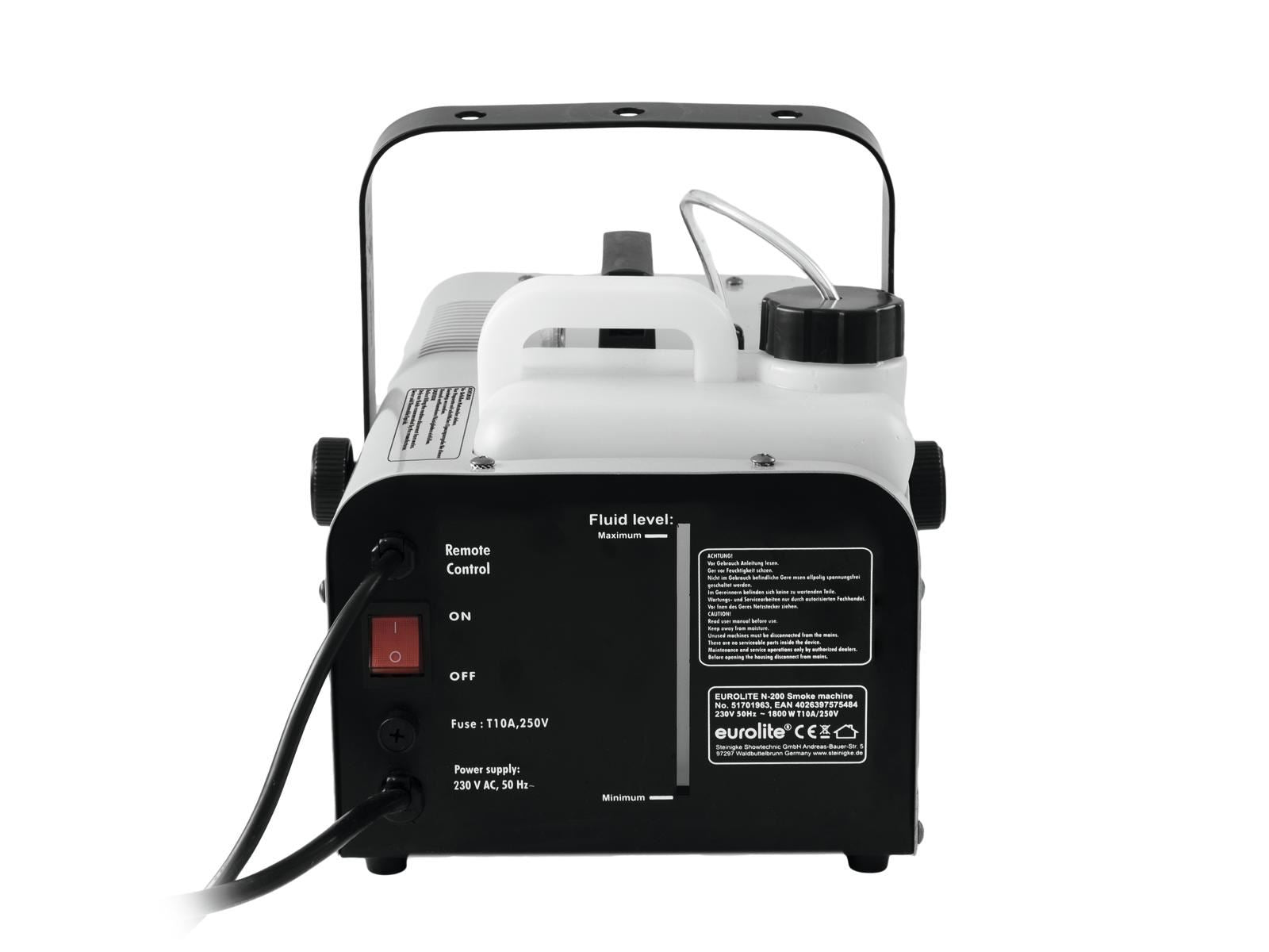 Die Eurolite N-200 Nebelmaschine ist eine leistungsstarke Nebelmaschine mit 1800 Watt. Ein/Aus-Fernbedienung im Lieferumfang enthalten.