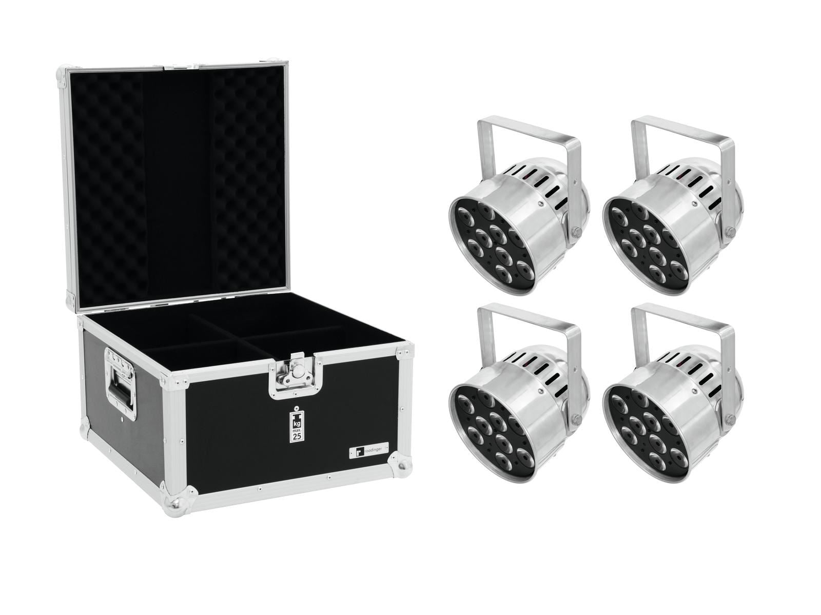 4x PAR-56 Spot mit 9 x 10 W 6in1 LED und RGBAW+UV Farbmischung inklusive Flightcase