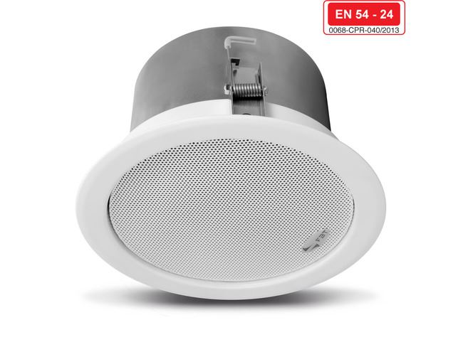 Der CSP 412 T/EN ist ein feuerfester Deckenlautsprecher aus Stahl mit einer einstellbaren Leistung von 12/6/3 W und 100/70/50 V. Dies ist in der Farbe Weiß erhältlich.