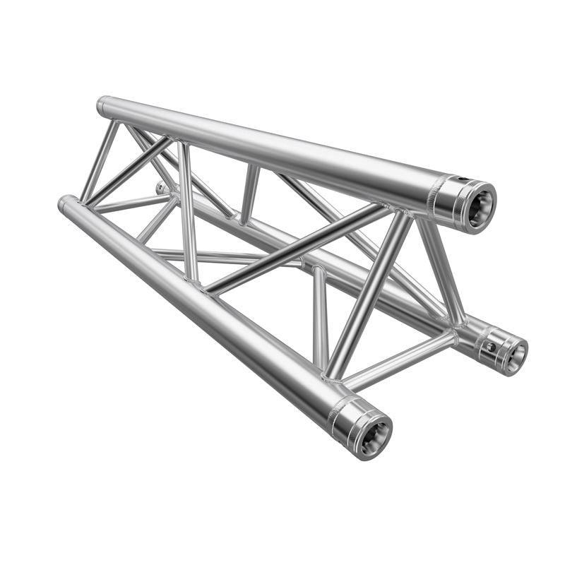 Der Global Truss F33 verfügt über TÜV-zertifiziertes Aluminiumschweißen und eine Wandstärke von 3 mm für eine hervorragende Tragfähigkeit. Es steht ein umfassendes Sortiment an Längen, Grundplatten, Ecken, Verbindern und Kupplungen zur Verfügung, wodurch sie sich ideal für Festinstallationen, Ladeneinrichtungen und Vermietungsanwendungen eignen. Zur schnellen Montage liegen jedem Teil konische Verbinder mit Stiften und R-Clips bei.