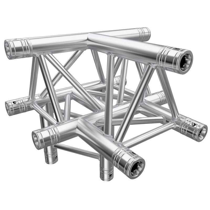 Der Global Truss F33 verfügt über TÜV-zertifiziertes Aluminiumschweißen und eine Wandstärke von 2 mm für eine hervorragende Tragfähigkeit. Es steht ein umfassendes Sortiment an Längen, Grundplatten, Ecken, Verbindern und Kupplungen zur Verfügung, wodurch sie sich ideal für Festinstallationen, Ladeneinrichtungen und Vermietungsanwendungen eignen.