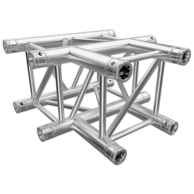 Der Global Truss F34 verfügt über TÜV-zertifiziertes Aluminiumschweißen und eine Wandstärke von 3 mm für eine hervorragende Tragfähigkeit. Es steht ein umfassendes Sortiment an Längen, Grundplatten, Ecken, Verbindern und Kupplungen zur Verfügung, wodurch sie sich ideal für Festinstallationen, Ladeneinrichtungen und Vermietungsanwendungen eignen.