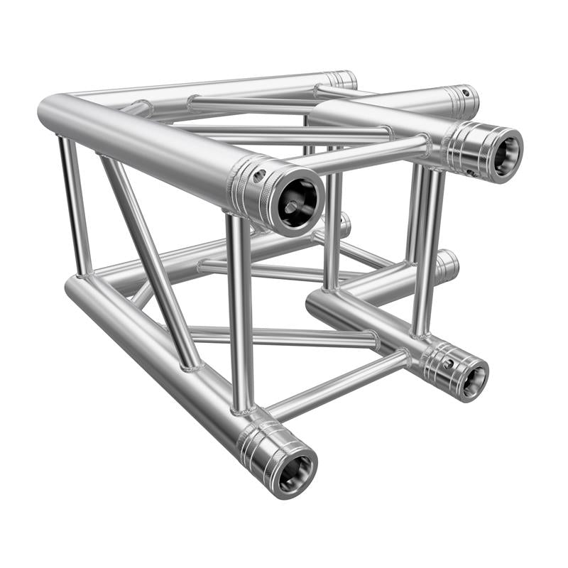 Der Global Truss F34 verfügt über TÜV-zertifiziertes Aluminiumschweißen und eine Wandstärke von 2 mm für eine hervorragende Tragfähigkeit. Es steht ein umfassendes Sortiment an Längen, Grundplatten, Ecken, Verbindern und Kupplungen zur Verfügung, wodurch sie sich ideal für Festinstallationen, Ladeneinrichtungen und Vermietungsanwendungen eignen.
