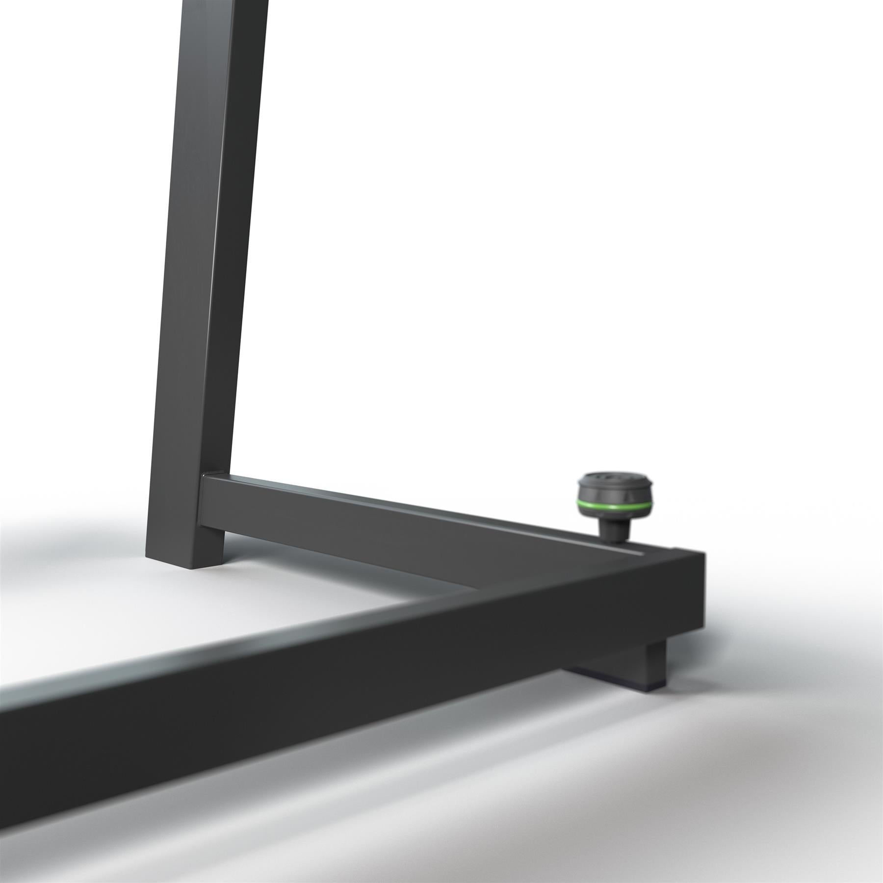 Your laptop is enthroned at the heart of your set-up in the middle of the table, held firmly in place by the integrated pins so that even if tilted extremely, it is always secure. Both loudspeaker and laptop trays can be adjusted precisely along the rear rail of the Gravity® FDJT 01 DJ Desk by shifting them to the left or right.