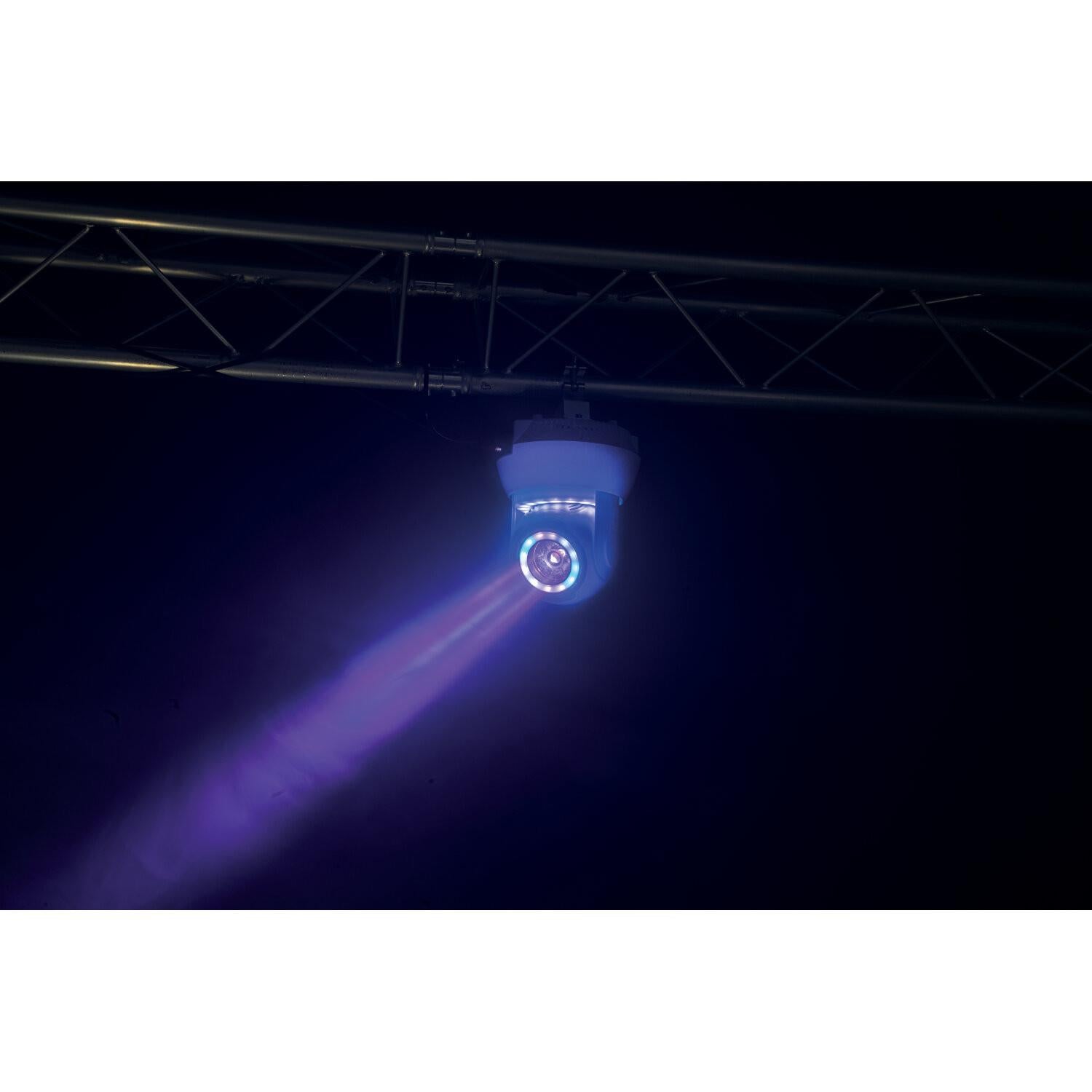 High-end, compact design moving head! The speedy light beam generated by a powerful 40W RGBW 4-in-1 LED sweeps the entire room, producing the very bright and focused beam effect. There are also two built-in halo-ring light effects, the first around the beam and the second integrated into the base giving a unique character to the moving head.