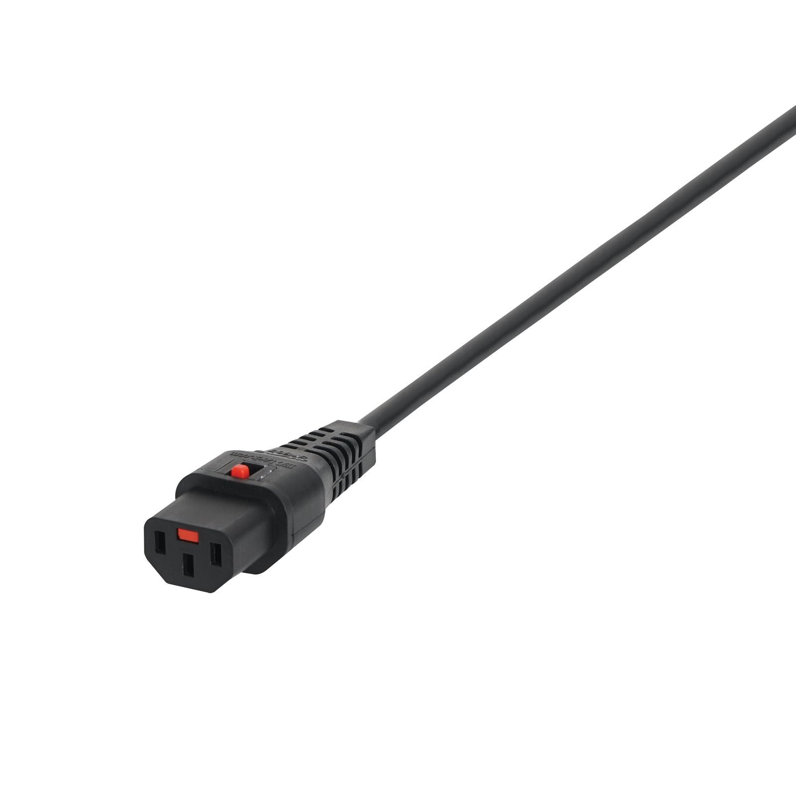 Schützt vor versehentlichem Ausschalten von Elektrogeräten, einschließlich Verstärkern, Mischpulten und Beleuchtungskörpern. Geeignet für die Verwendung mit C13/C14-IEC-Steckern aller Marken.