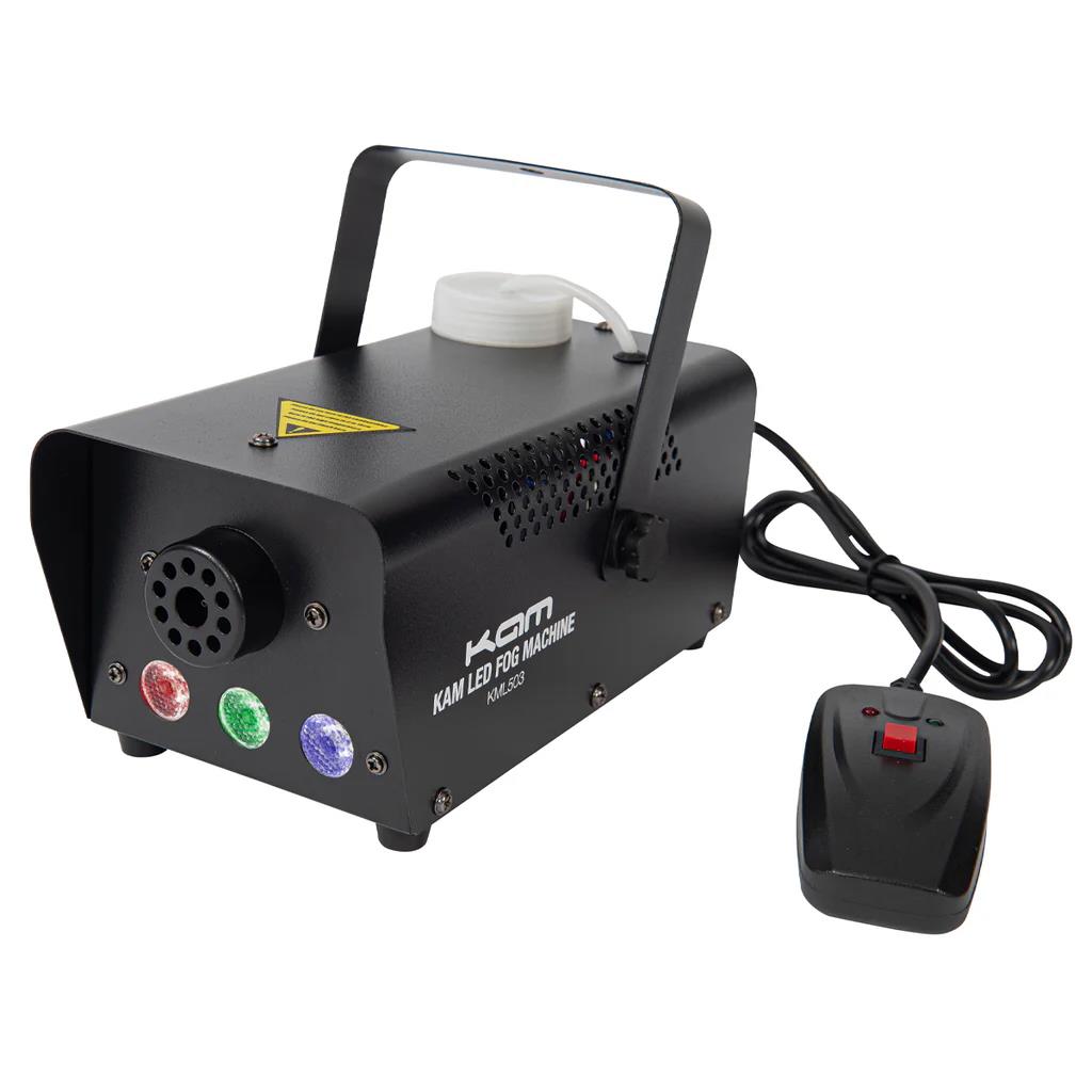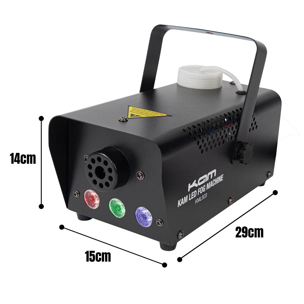 Introducing the Kam LED Fog Machine—a powerful and versatile addition to your lighting setup. With a robust 400W power output, this fog machine delivers impressive performance, ideal for creating an enchanting atmosphere at any event. It features three vibrant 1W LEDs in red, green, blue, and yellow, allowing you to add a colourful twist to your fog effects.