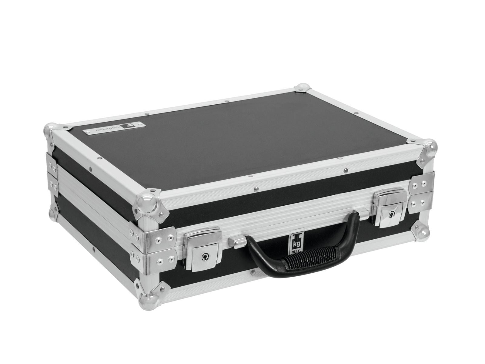 Flightcase für einen Laptop mit 13"Mit der ROADINGER Laptoptasche ist Ihr 13" Laptop immer gut geschützt. Das Hauptfach ist für einen Laptop mit einer maximalen Größe von 325 x 230 x 30 mm ausgelegt. Die im Deckel integrierte Zubehörtasche eignet sich für externe Festplatten oder Netzteile und Kabel. Die hochwertige Verarbeitung mit 4 mm starkem, mehrschichtig verleimtem Holz und der robuste Tragegriff sorgen dafür, dass Ihr Laptop gut geschützt ist. Für die nötige Stabilität sorgen der Aluminium-Profilrahmen und die kleinen, dreibeinigen Stahlkugelecken. Die beiden abschließbaren Schnappschlösser sichern Ihren Laptop zusätzlich vor unbefugtem Zugriff.