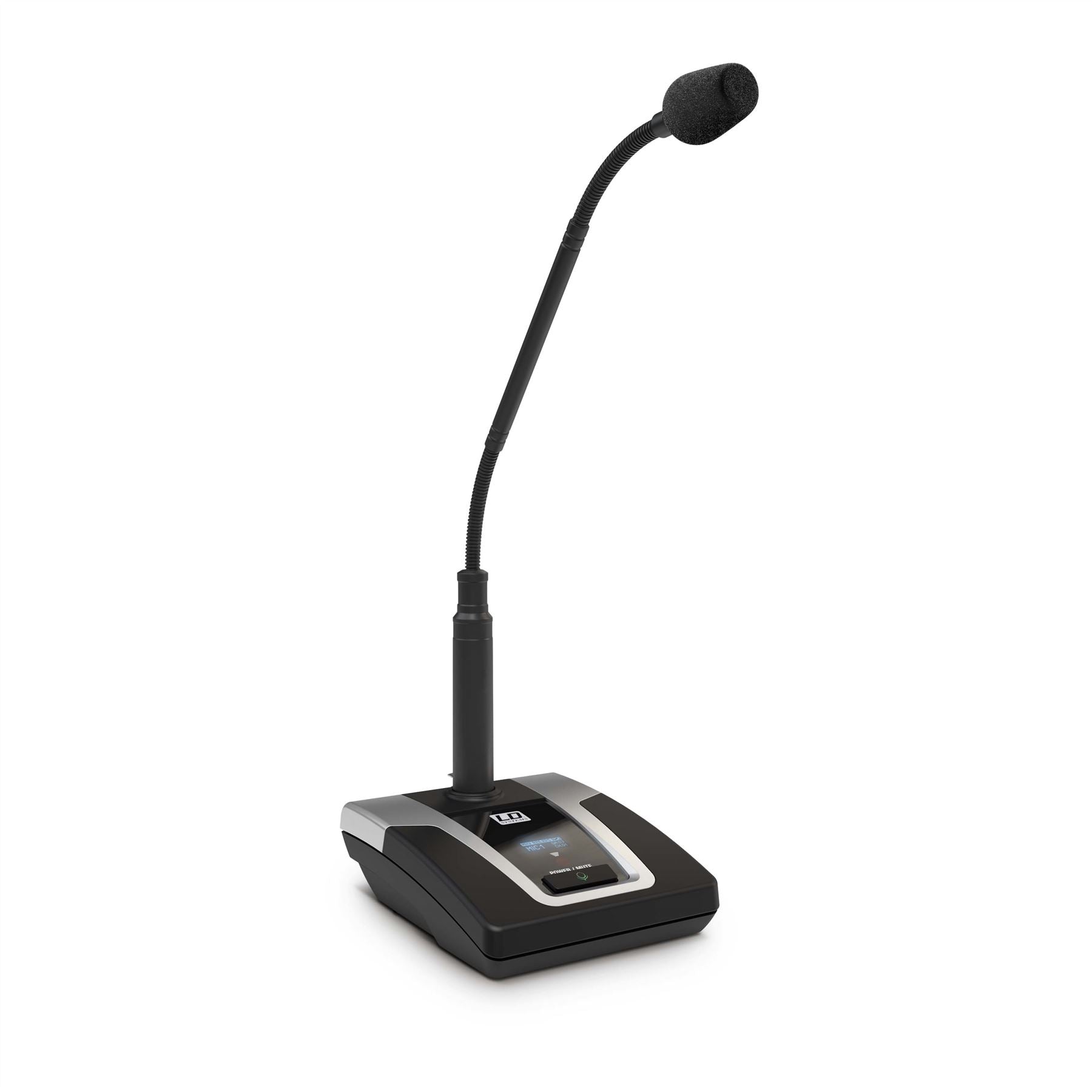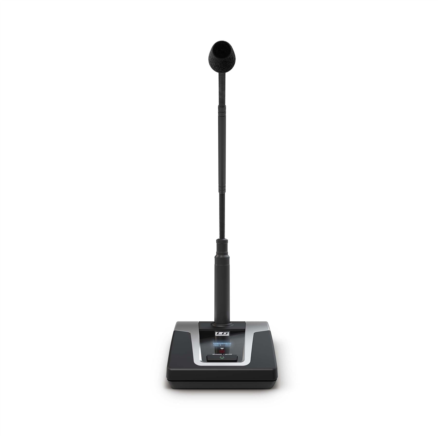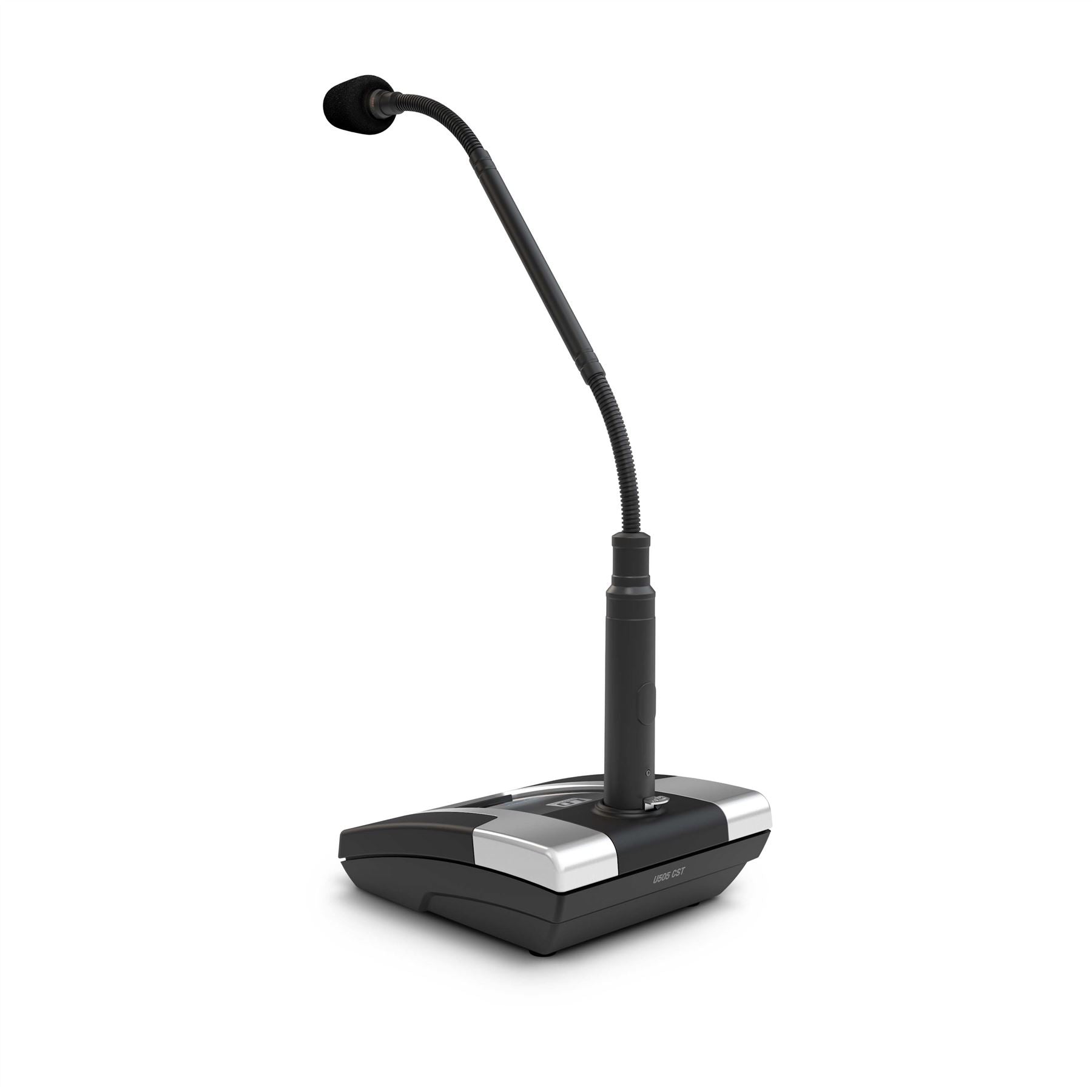 Die U500A-Terminals verfügen über ein Schwanenhals-Kondensatormikrofon mit Hypernierencharakteristik und einen Leuchtring zur Statusanzeige. Das schwere Tischstativ verfügt über einen XLR-Mikrofoneingang, 28-V-Phantomspeisung, einen On-Off-Mute-Schalter sowie einen Gain-Regler und einen zuschaltbaren 130-Hz-Hochpassfilter zur effektiven Reduzierung von Nahbesprechungseffekten und Körperschall. Ein kontrastreiches OLED-Display zeigt Funkfrequenz, Batteriestatus, Terminalnummer, Gruppe und Kanal an. Der Audioübertragungsbereich beträgt 60 Hz - 16 kHz.