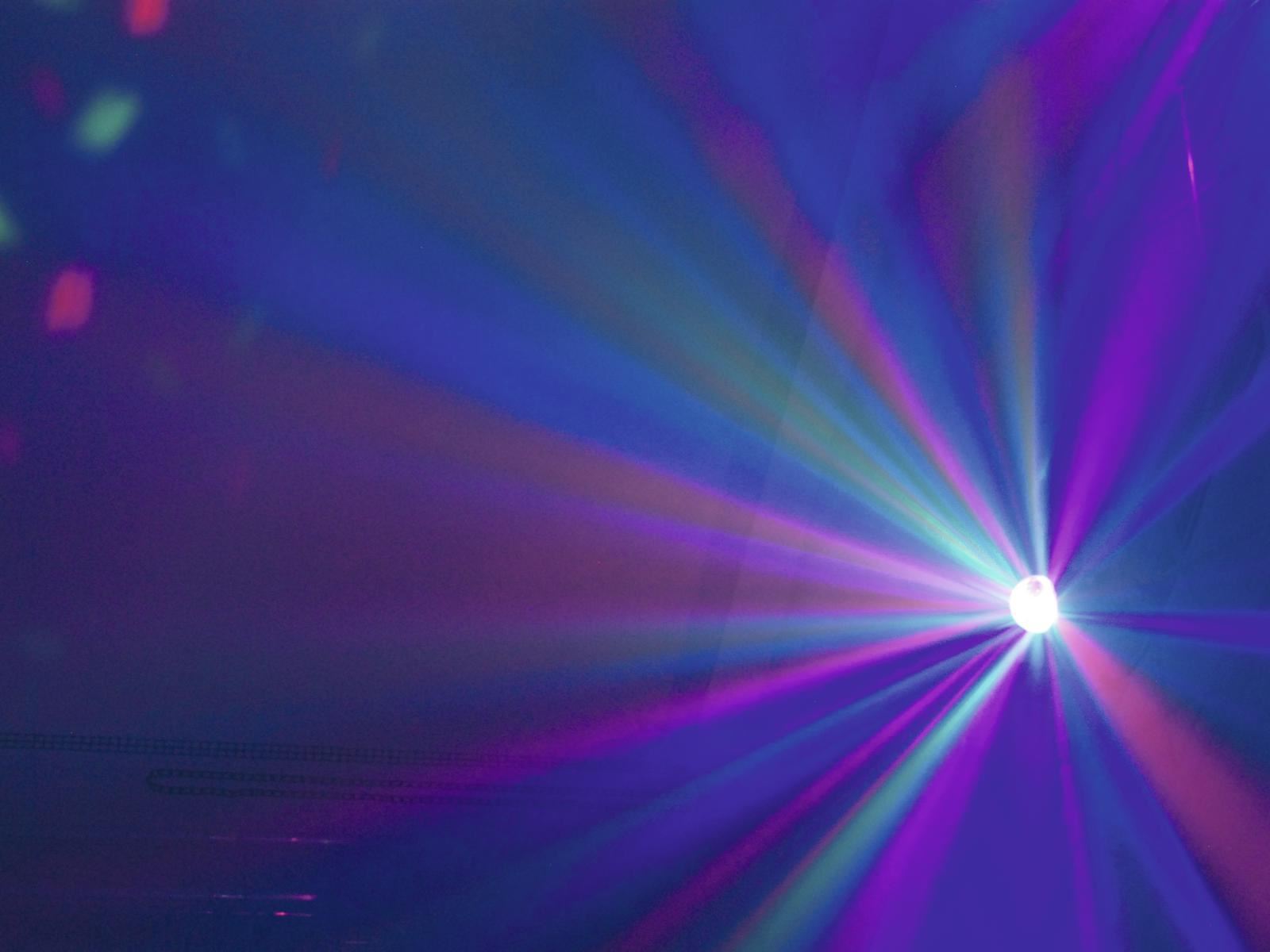 Der superkompakte Strahleffekt LED BC-3 von Eurolite erzeugt beeindruckende, raumfüllende Spiegelkugeleffekte mit 360? Rotationen in Wohnzimmern, Home-Party-Räumen, kleineren Clubs und mehr – vollautomatisch. Die klare und facettierte Oberfläche lässt die Strahlen stimmungsvoll durch den Raum wirbeln. Der LED BC-3 ist mit drei hellen LEDs in den Farben Rot, Grün und Blau ausgestattet.