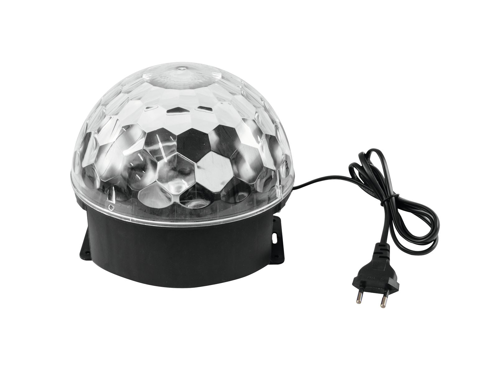 Der kompakte LED BC-4 Beam Effect von Eurolite erzeugt beeindruckende, raumfüllende Spiegelkugeleffekte in Wohnzimmern, Home-Party-Kellern, kleineren Clubs und mehr – und das vollautomatisch dank einfach zu handhabendem Plug & Play-Betrieb. Die klare und Die facettierte Oberfläche lässt die Strahlen stimmungsvoll durch den Raum wirbeln. Der LED BC-4 ist mit sechs hellen LEDs in den Farben Rot, Orange, Blau, Weiß, Grün und Lila ausgestattet. Dank seines ultraleichten Kunststoffgehäuses können Sie diesen Effekt problemlos mitnehmen und überall aufstellen. Die Grundplatte ermöglicht auch eine Wandmontage.